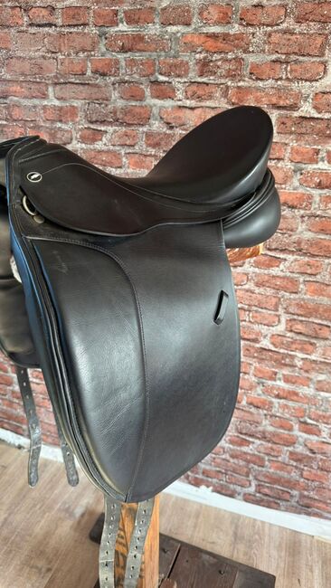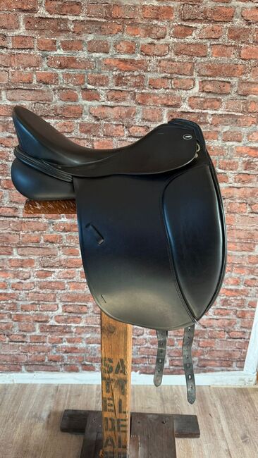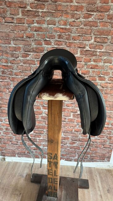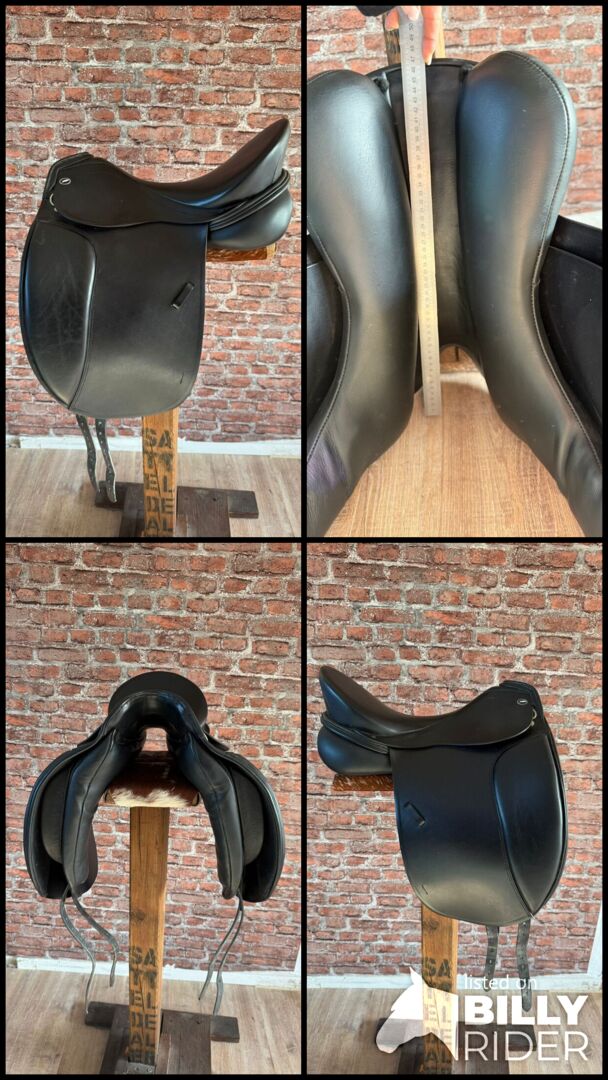 The Dressage Champion 1 DR is suitable for horses with a relatively short saddle area. It has a seat area of 17.5 inches with a seat width of 33, cold adjustable. The Velcro straps offer the rider good possibilities for individual adjustment. It is in very good, almost new condition.