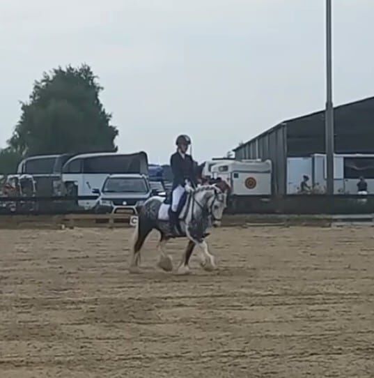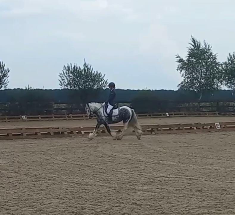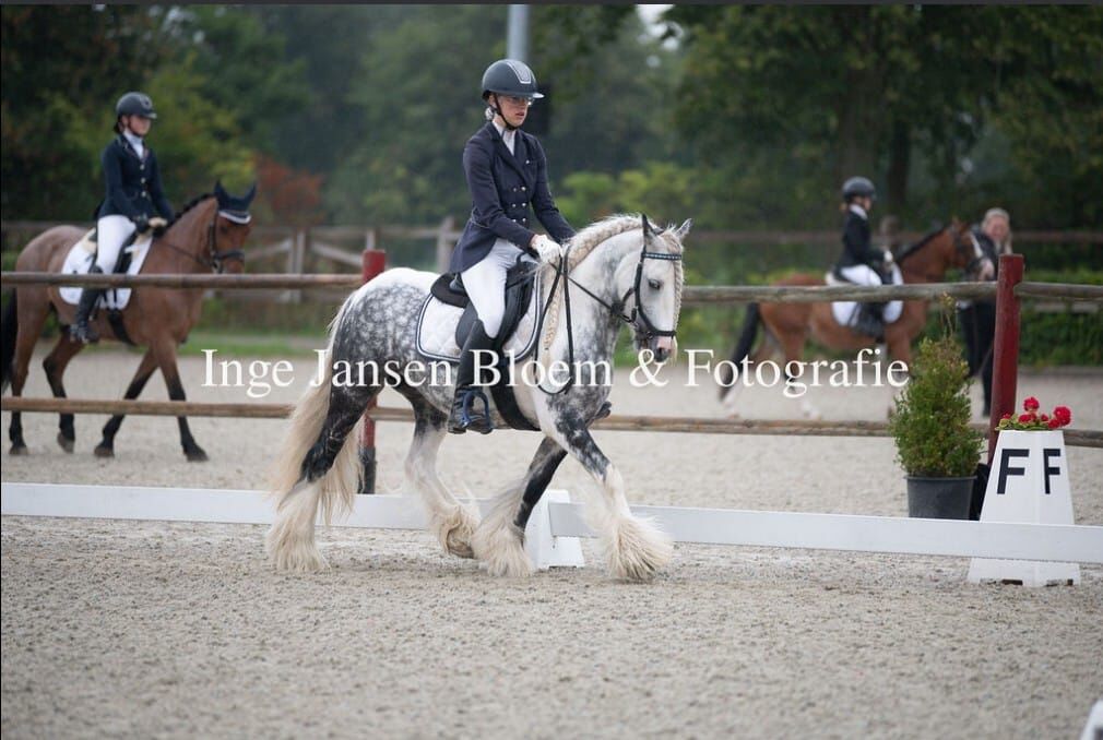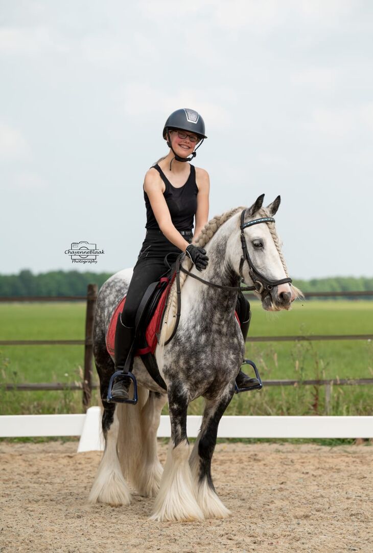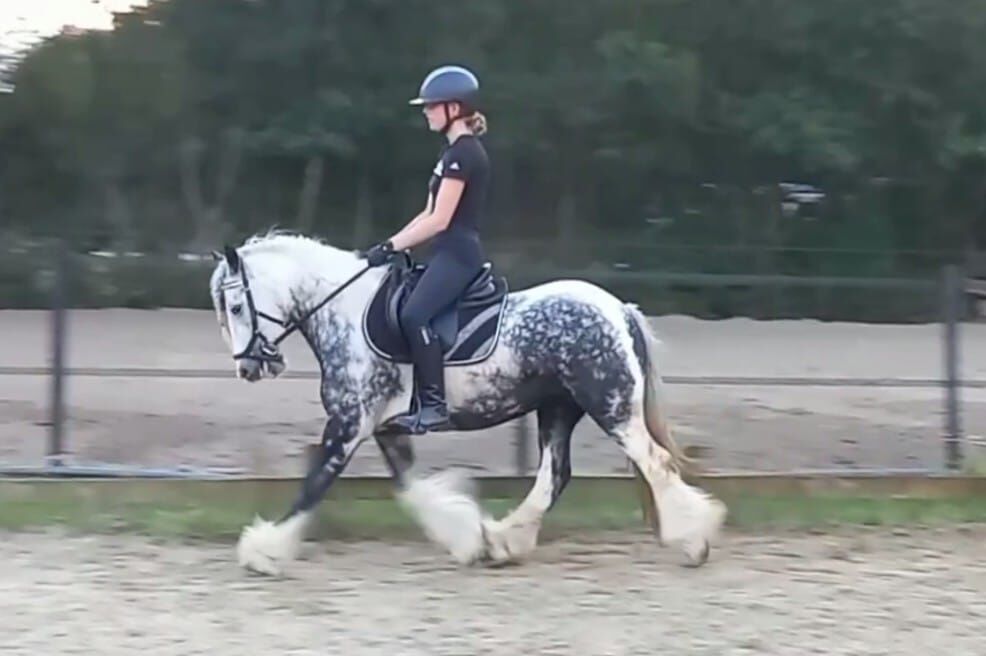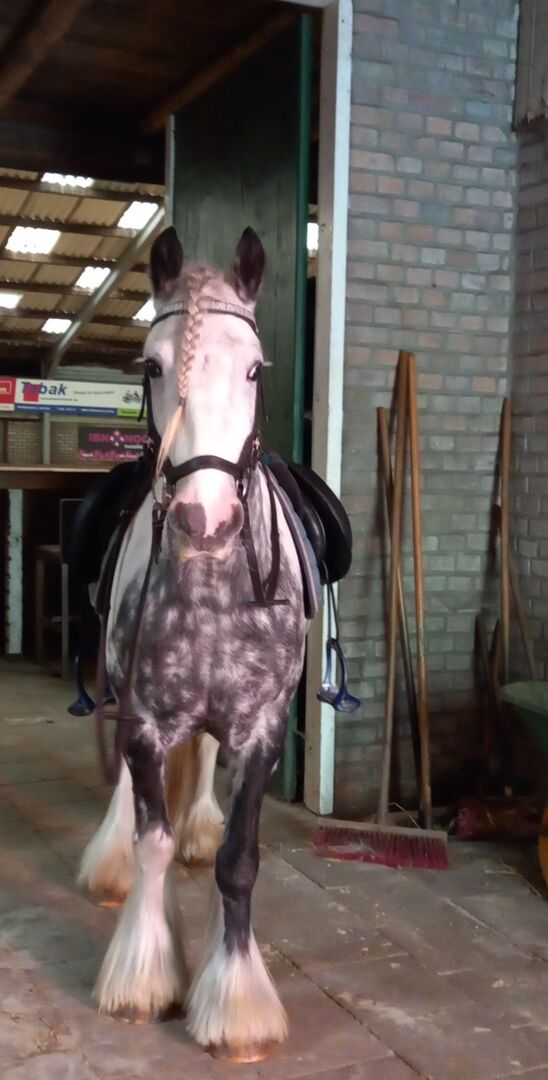 6-year-old Tinker mare approx. 1.35 Large L2 Dressage - We are looking for a new owner for our 6-year-old tinker mare Moonlight. Moonlight is about 1,35 tall and super well-behaved and free of stabling problems. She is also very quiet in the grooming area. Brushing, washing, saddling she doesn't mind at all, she stays calm. Even at the farrier and dentist she doesn't make a wrong move. Moonlight has long manes, big full socks and a thick tail. Basically how a tinker should be. She is good to ride, also on strange terrain and at competitions. She gets on the trailer very easily. Alone or with another pony makes no difference. Moonligt will never rear or buck under saddle. We have started her on competitions in the L2 dressage class. Here she always got high points from the judges. On competition she jumps in the 60cm class. For more info and videos of Moonlight send a whatsapp message to 004915154809450.