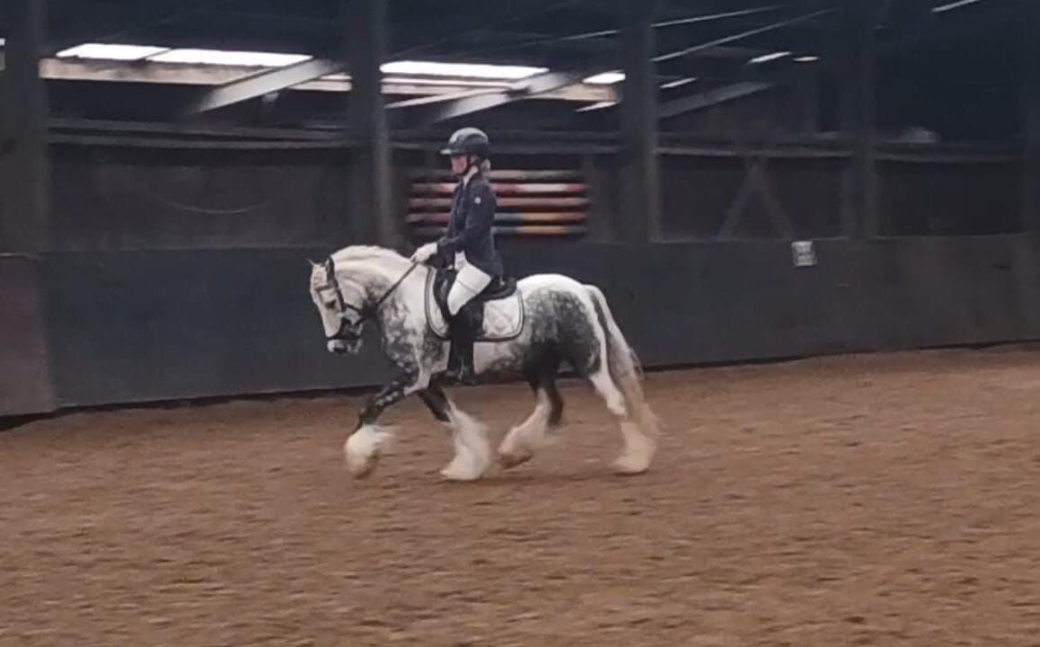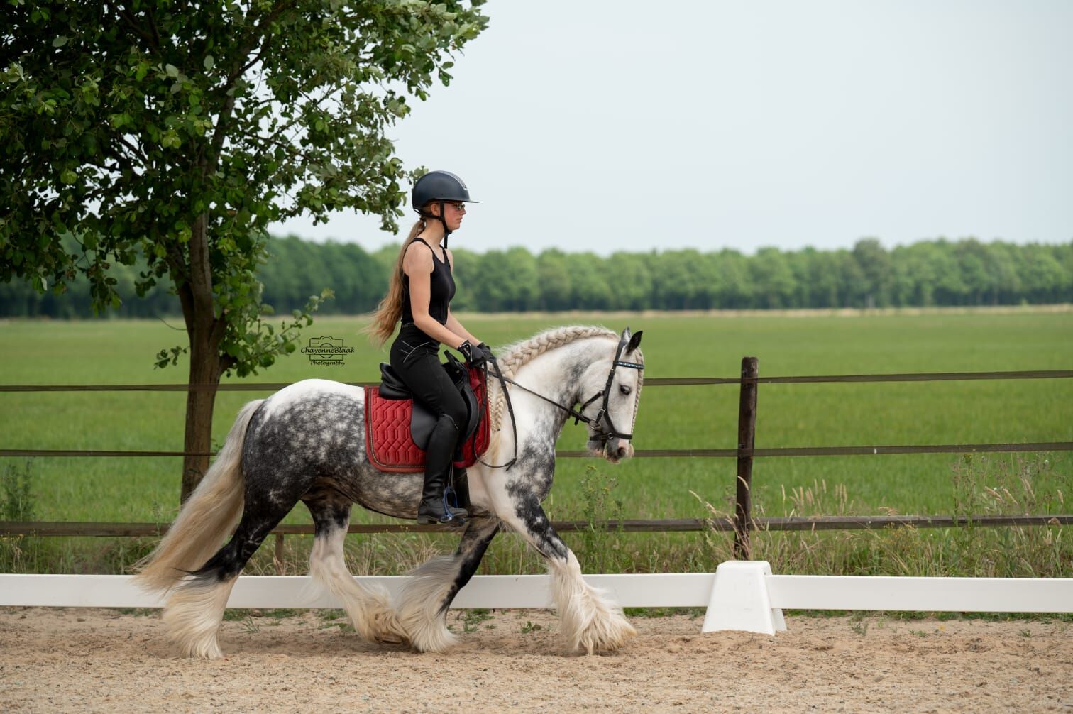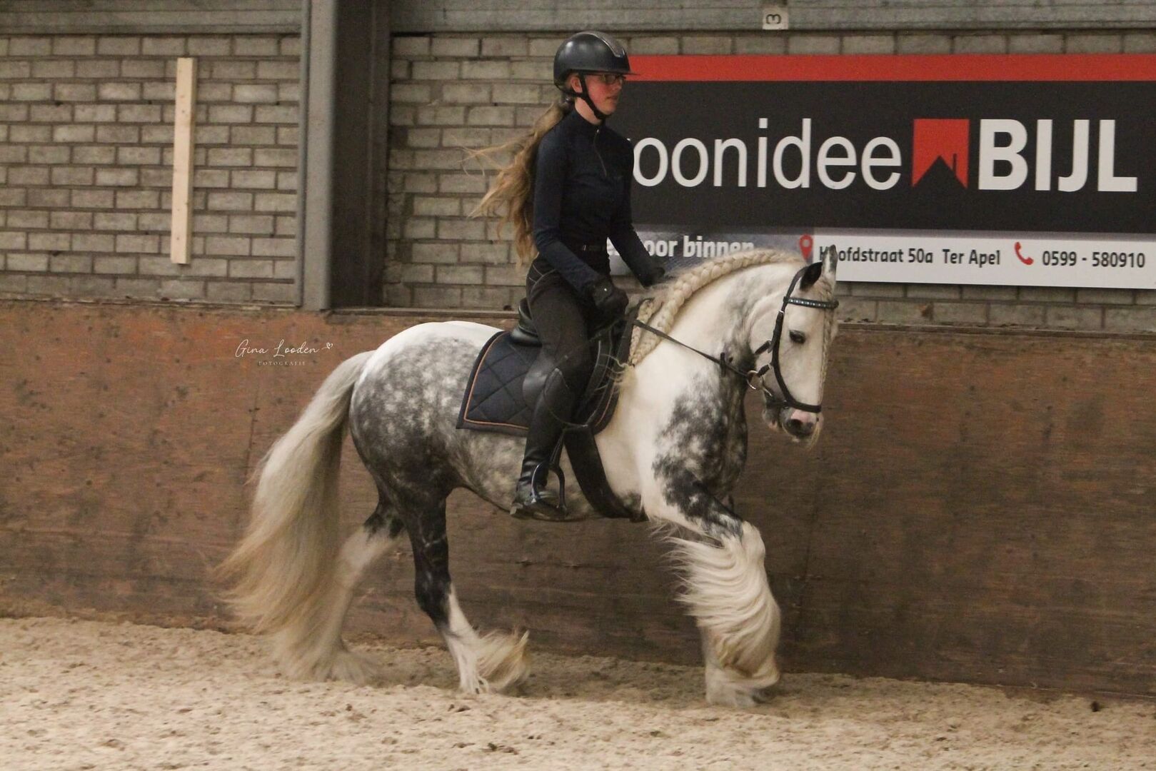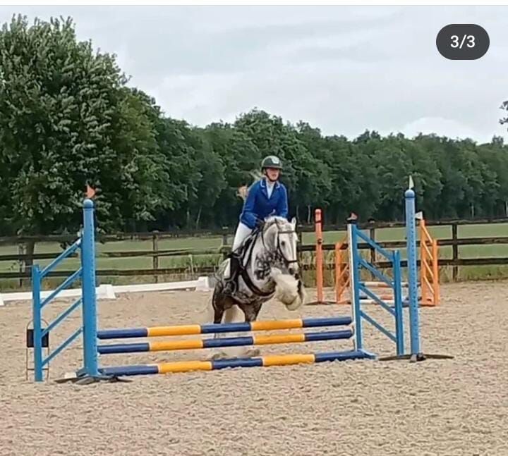 6-year-old Tinker mare approx. 1.35 Large L2 Dressage - We are looking for a new owner for our 6-year-old tinker mare Moonlight. Moonlight is about 1,35 tall and super well-behaved and free of stabling problems. She is also very quiet in the grooming area. Brushing, washing, saddling she doesn't mind at all, she stays calm. Even at the farrier and dentist she doesn't make a wrong move. Moonlight has long manes, big full socks and a thick tail. Basically how a tinker should be. She is good to ride, also on strange terrain and at competitions. She gets on the trailer very easily. Alone or with another pony makes no difference. Moonligt will never rear or buck under saddle. We have started her on competitions in the L2 dressage class. Here she always got high points from the judges. On competition she jumps in the 60cm class. For more info and videos of Moonlight send a whatsapp message to 004915154809450.