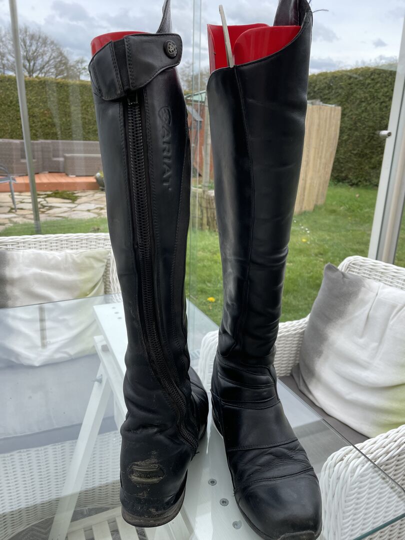 Ariat nitro riding boots - Must part with my boots because my calves have become too thick . My calves are 37cm. The boots are used and at the zipper the seam has loosened 5 stitches( because my calves are now too tight) is not a hindrance with the functionality. Through the insert in the shaft , you do not sweat so on the leg. See photo