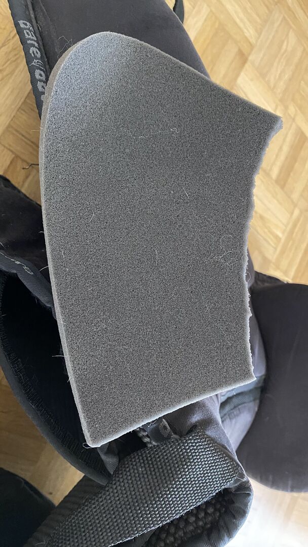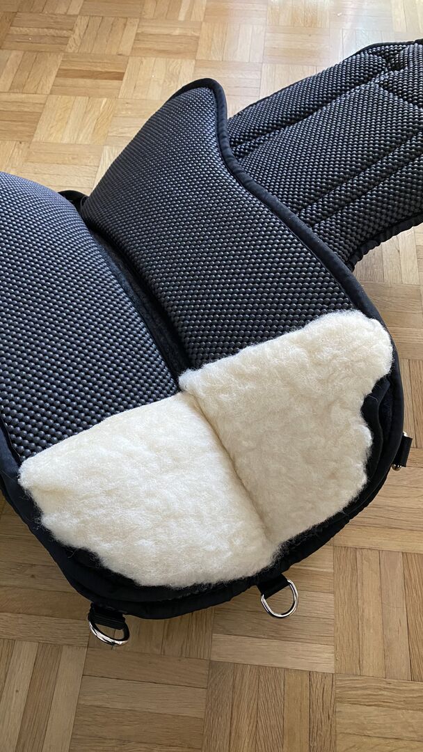 I am selling a Physio Support from Barefoot in black in size L including the original girth pads. I have had the pad for a while, but due to illness was only recently able to finally test it. I had it three times(always with clean saddle pad underneath) on the horse. Otherwise it was with saddle pad in the tack room. therefore it is partly slightly dusty in the grooves, but in absolutely mint condition, since almost never used and it never had direct contact with the horse. Unfortunately, L is too big for me, so I do not have the necessary hold in it that I had hoped for....