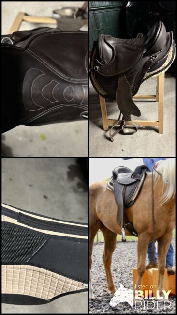 Verkaufe gut erhaltenen, zum Einreiten für Jungpferd gebrauchten Barefoot-Sattel, inkl. Gurt (45 cm /18 inches), Western-Fender und Steigbügel. Neupreis 1'200.- EUR