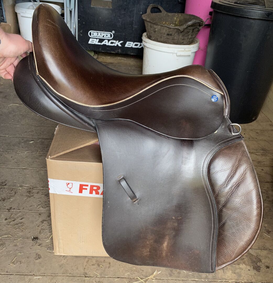 Brown Barnsby saddle, gold piping on seat. Used, but great condition. Very comfortable, memory foam seat. Only selling because pony has lost a lot of muscle and doesn’t fit him anymore.