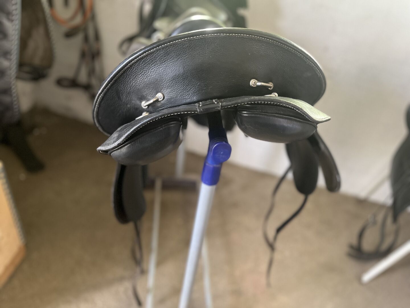 Baroque saddle from Deuber for sale - Used baroque saddle Desmond O'Brian by Deuber for sale. It has an adjustable saddle tree and comes with mono stirrup leathers and stirrups.