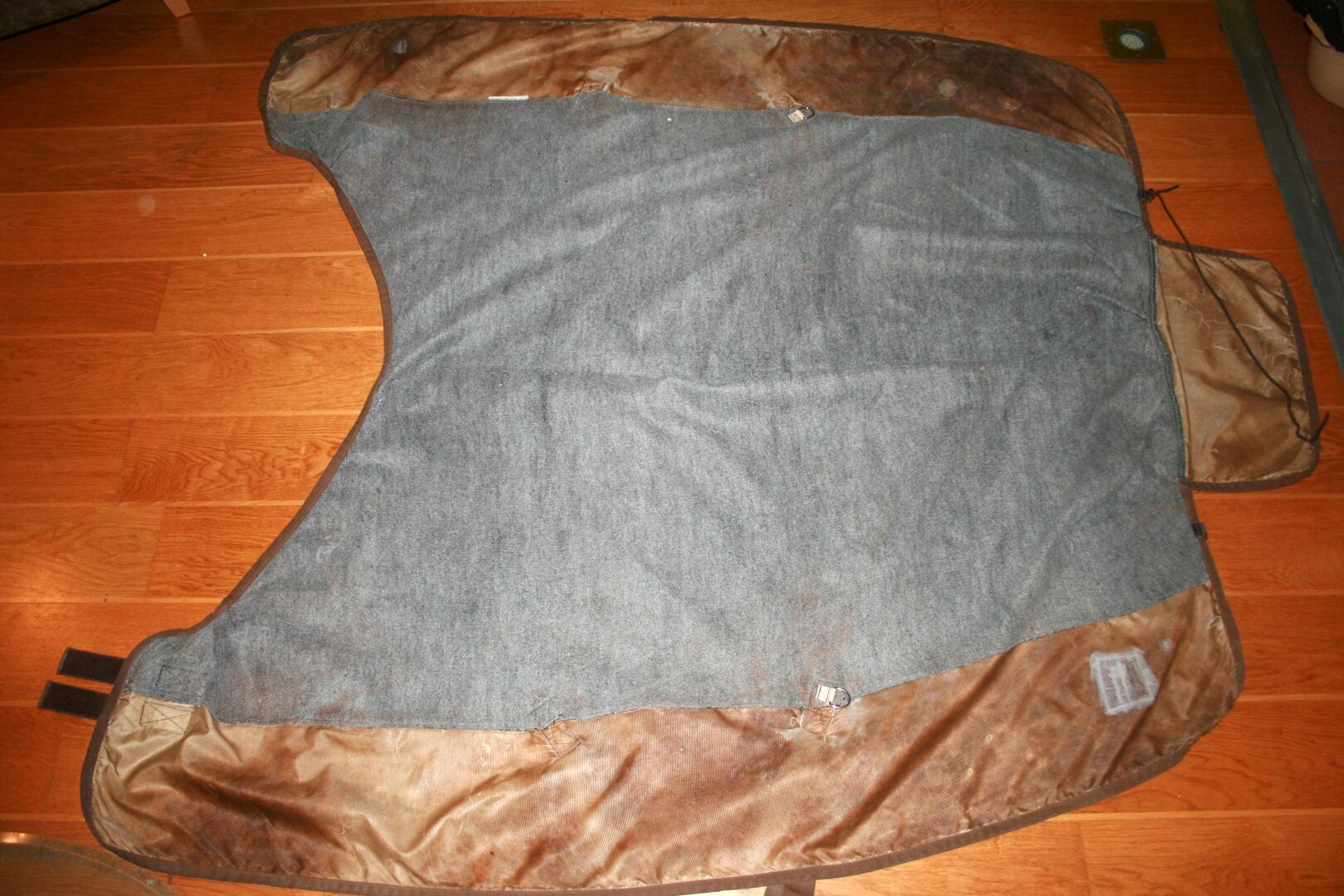 Blanket, Bucas, Smartex Rain, 160 cm RL, cream brown, with Stay-Dry lining - Rug, Bucas, Smartex Rain, 160 cm RL, cream brown, with Stay-Dry lining, cross surcingles, tail flap and tail strap. The rug was used as a reliable and at the same time waterproof wind and rain rug. The rug is largely dehaired (on both sides of the inner lining!), washed, impregnated and waterproof. Damage to the outer fabric has been repaired professionally and as inconspicuously as possible. The seams were also rubberized, as were areas where the rubber had come loose. The blanket is now definitely waterproof again. Unfortunately, not all stains could be removed. Filling 0 g, Stay Dry inner lining. 79,- € plus shipping. #2454