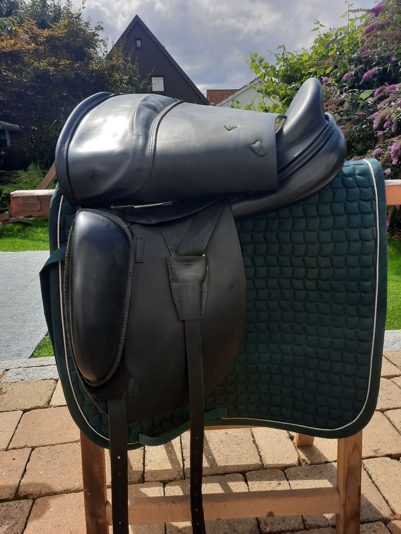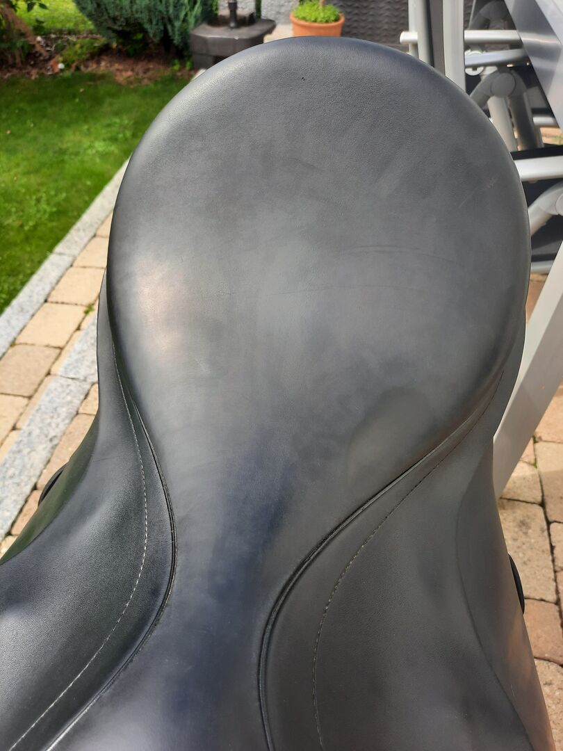 Bucks dressage saddle 17,5 inch - Hello all, I am selling my 17.5 inch Bucks dressage saddle (embossed number 03163151756962). I bought it 4 years ago used at the saddler. It was 1 year old at the time according to the saddler. The new price was about 2.400 €. It fitted my horse with high withers, round ribbed and hardly muscled at the time. I have used him little. It shows normal signs of use. It has never fallen off. The saddle can be padded by a saddler and the gullet width is adjustable. The saddle can also be shipped or picked up in Holzgerlingen if you pay the shipping costs.