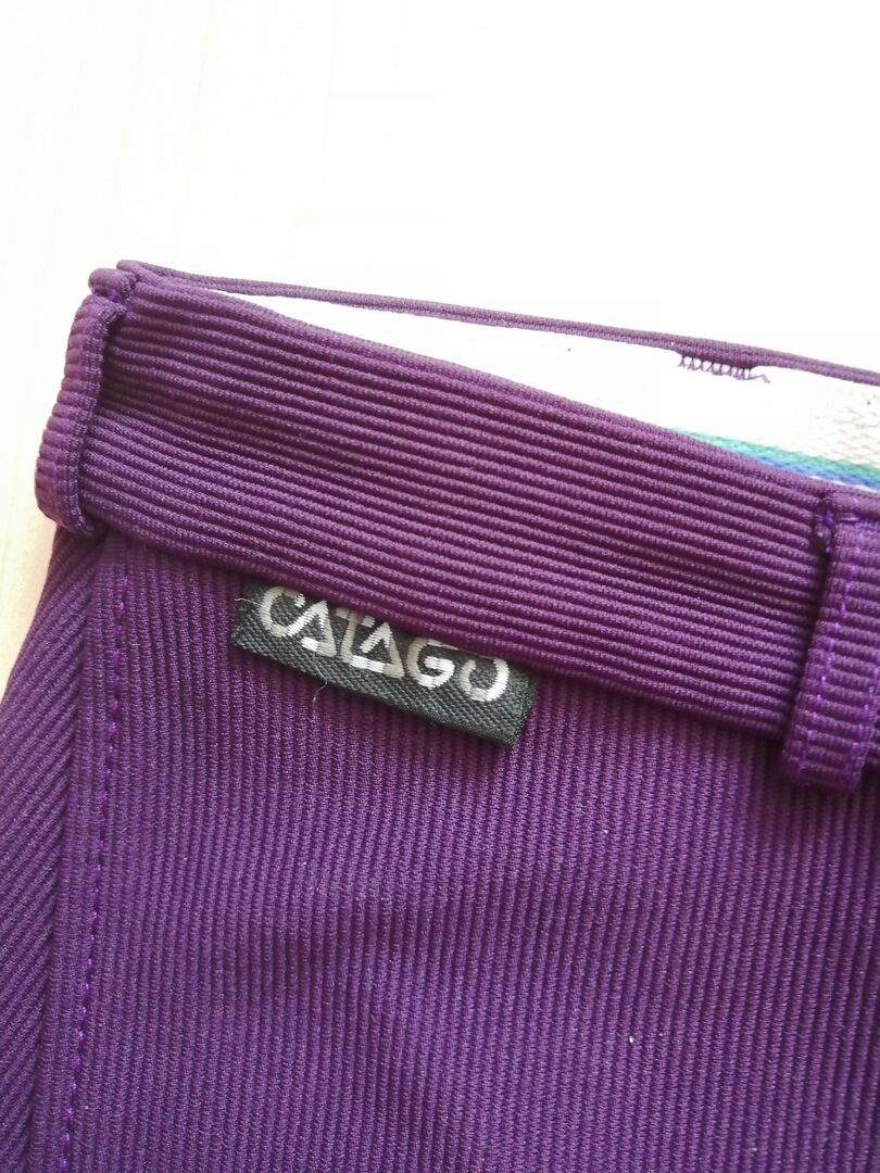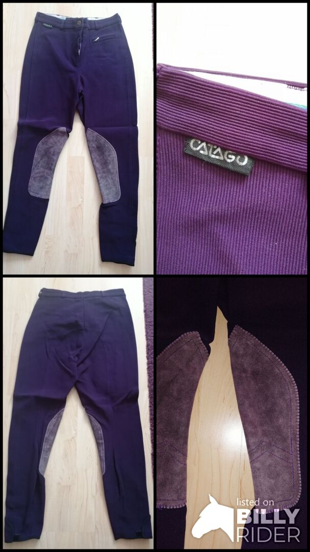 Catago breeches purple / berry / dark purple - Sell here this purple Catago breeches with knee patches. It has a small pocket and a Velcro closure at the bottom of the legs. Unfortunately, there is no size inside anymore. Waist size about 34cm, outer leg length about 88-89cm, inner leg length about 58-59cm. Condition they see in the pictures. If you have any questions, please write. Shipping by arrangement.