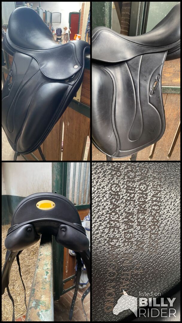 Celery Equipe Oracle 17.5" - Well-maintained dressage saddle, "Grip" leather, soft mono flap, Oracle 17.5" M+1 Only (rarely) ridden on a full-size pony. Has only been cared for with the Equipe care set, which can be added. NP 4200€