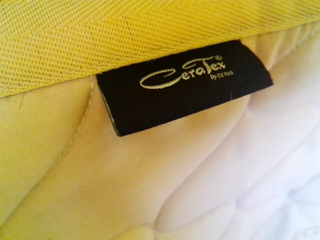 CeraTex saddle pad dressage size PONY back warming ceramic fibers - Saddle pad from the CERATEX brand that is gentle on the back and promotes circulation. In the trendy summer color champagne / light beige or light sand. It fits under a pony saddle, whether dressage or jumping saddle, the side length is shorter than the version for WB, the back length is slightly the same, dimensions: 56 x 41 cm, the saddle pad has the well-known ceramic fibers for heat reflection, analogous to the products of BACK ON TRACK. The saddle pad is freshly washed, little used and still with a few white hairs that did not go away. Non-smoking household, private sale. Paypal available