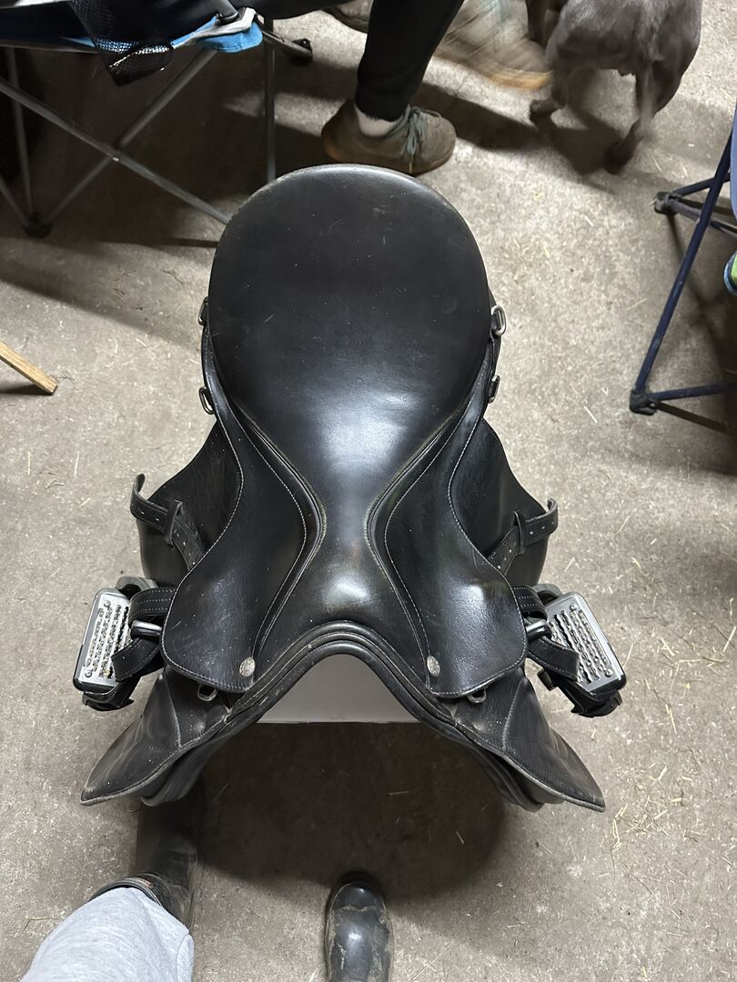 For sale as I no longer use it, saddle come with horse. Size wide, fits a wide thoroughbred. Comfortable saddle.