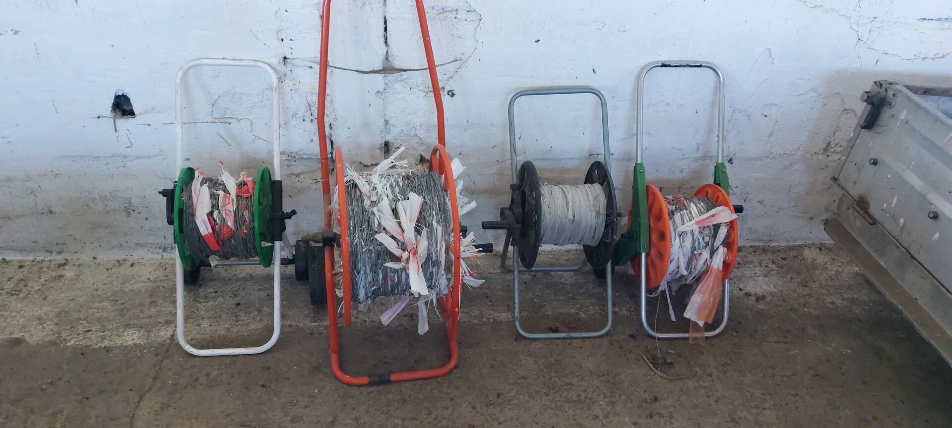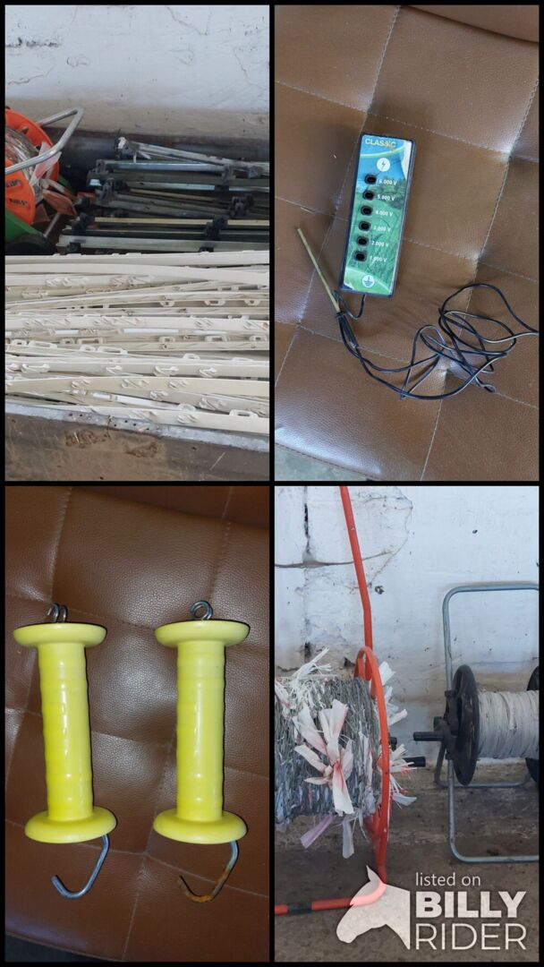 Complete trailer with grazing accessories - Offer here complete in a package: - Trailer with tarpaulin without road approval, only intended for coupling purposes, - 61 plastic fence posts 1.56m as good as new - 23 plastic fence posts 1.56m of which 4 short 1.20m well used - 55 metal fence posts 1.20m - 4 hose trolleys stranded wire, 3x mono 1x white tape sufficient for 3 ha double pulled - 1 electric fence tester - 2 gate handles - 80 new insulators with cotter pins in original packaging - Impact device for battery and mains current. Functional - battery The whole thing is only available complete with trailer Please call or WhatsApp at 015204021557 Email will not be answered No guarantee or return
