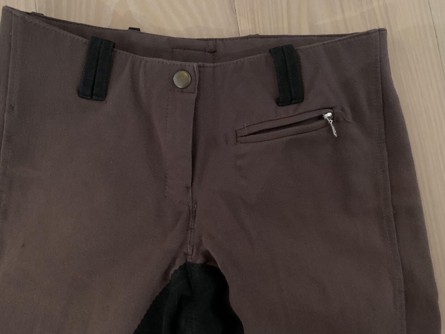 Equilibre Krämer riding breeches, brown-black, full seat, 34, ladies - Sell here a pair of breeches Equilibre brand from Krämer in brown with black colored full seat. It is the model Jil, which is more of a hip breeches.