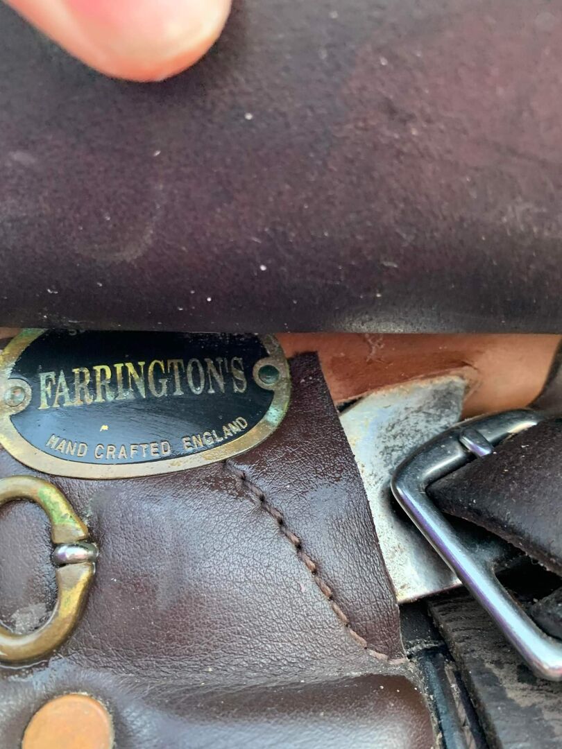 Farringtons dark brown leather saddle 17.5". Comes with stirrups and leathers. Lovely saddle. Great condition and markings. All proceeds from the sale will go to a horse sanctuary