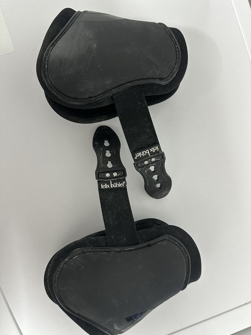 The fetlock boots are black and in size Full. They are from Felix Bühler.