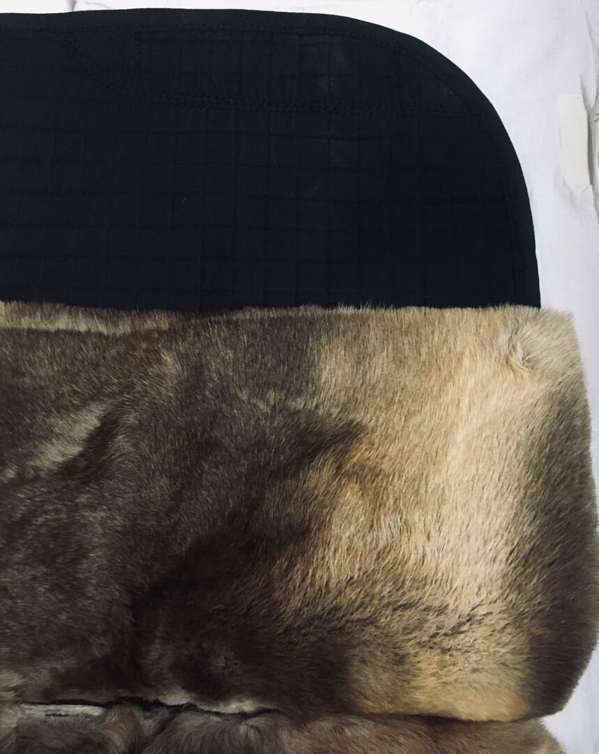 The reindeer hair is hollow inside, and it is the best fur for saddle pads ever! Not only for sensitive horses totally valuable. Reindeer hair never settles or becomes flat, but remains stable in your structure druch the hollow hair. The sweat runs off between the tubular hairs. The reindeer hair does not absorb sweat, like the "wool fiber" in sheepskin. These tubular hairs thus form a "breathable cushion".