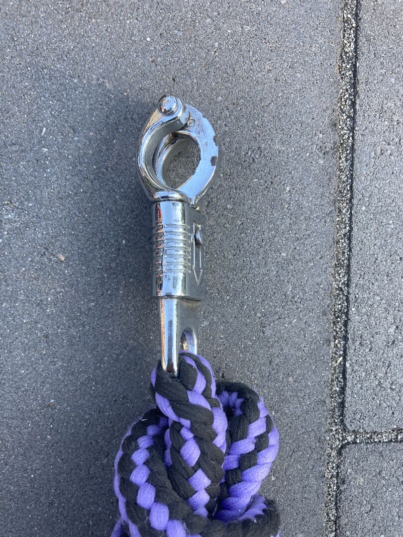 Halter + matching rope - The halter is in good condition but has a few signs of use (light fraying). The adjustable buckles work perfectly, as well as the hook to close the halter. There is light padding in the neck and inside the nose. The rope has a panic hook.