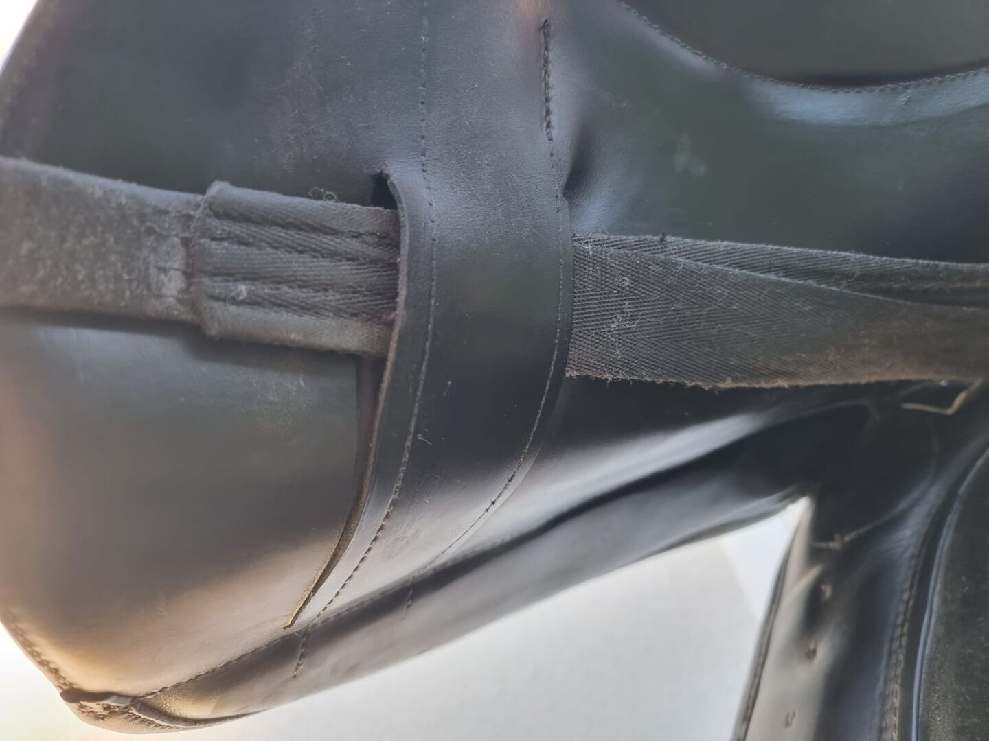 The special pommel shape in front and behind the leg gives a secure, calm and comfortable seat feeling. Due to the adaptable special spring tree, it can be adjusted to almost any horse's back by a specialist. The chamber shape and wide spine channel make it perfect for larger horses with high withers. Seat area approx. 16 inches. All dimensions are shown in the pictures.
