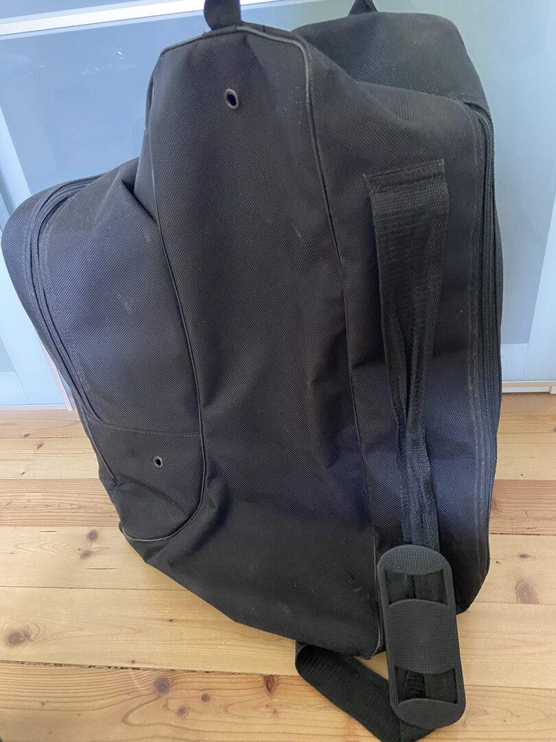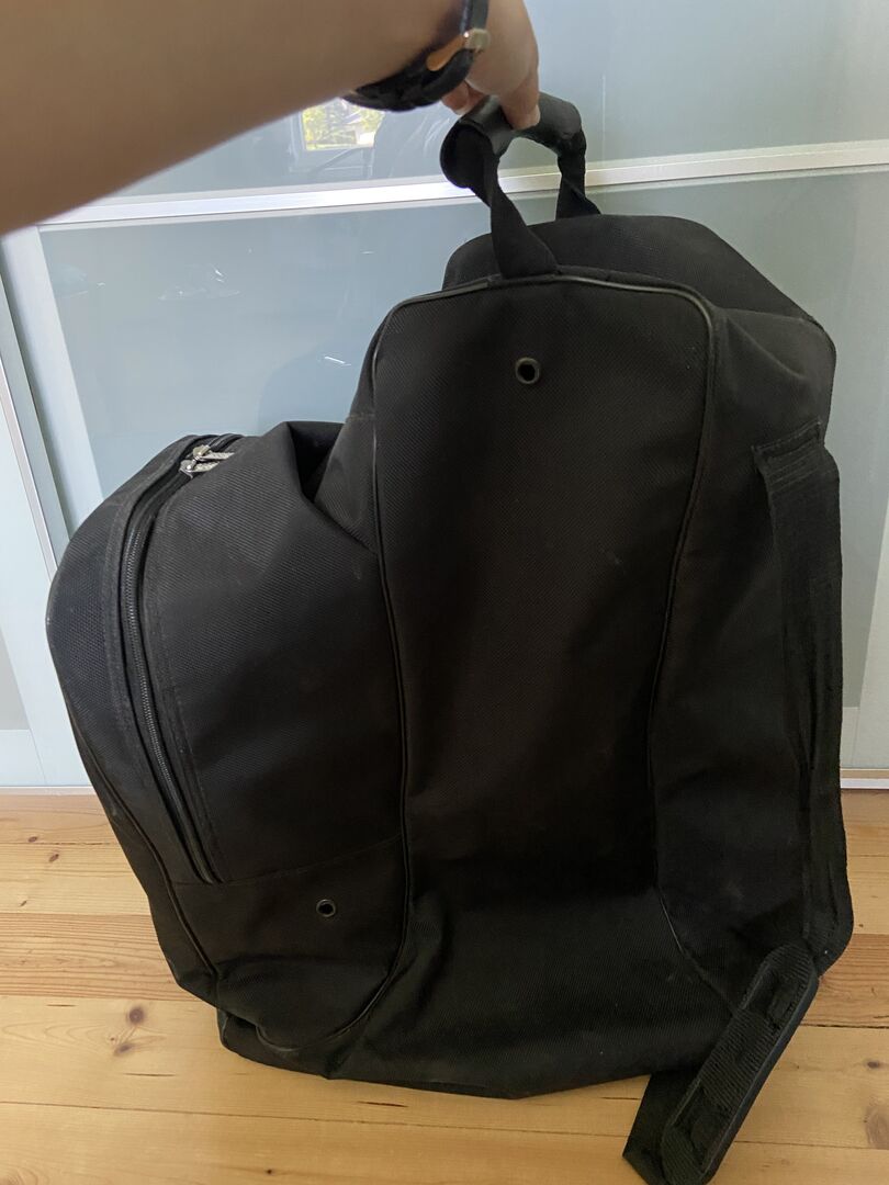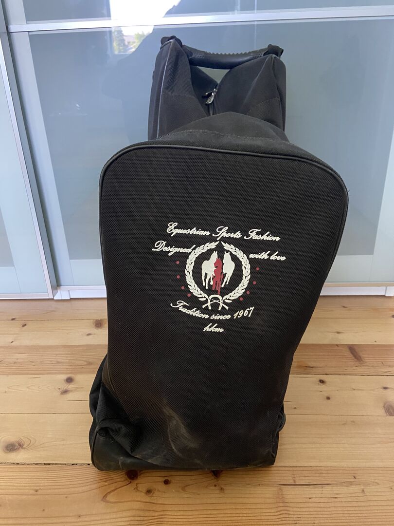 HKM riding boot backpack black - Riding boot backpack from HKM in black for sale. Has two large compartments, one for the helmet and one for riding boots.