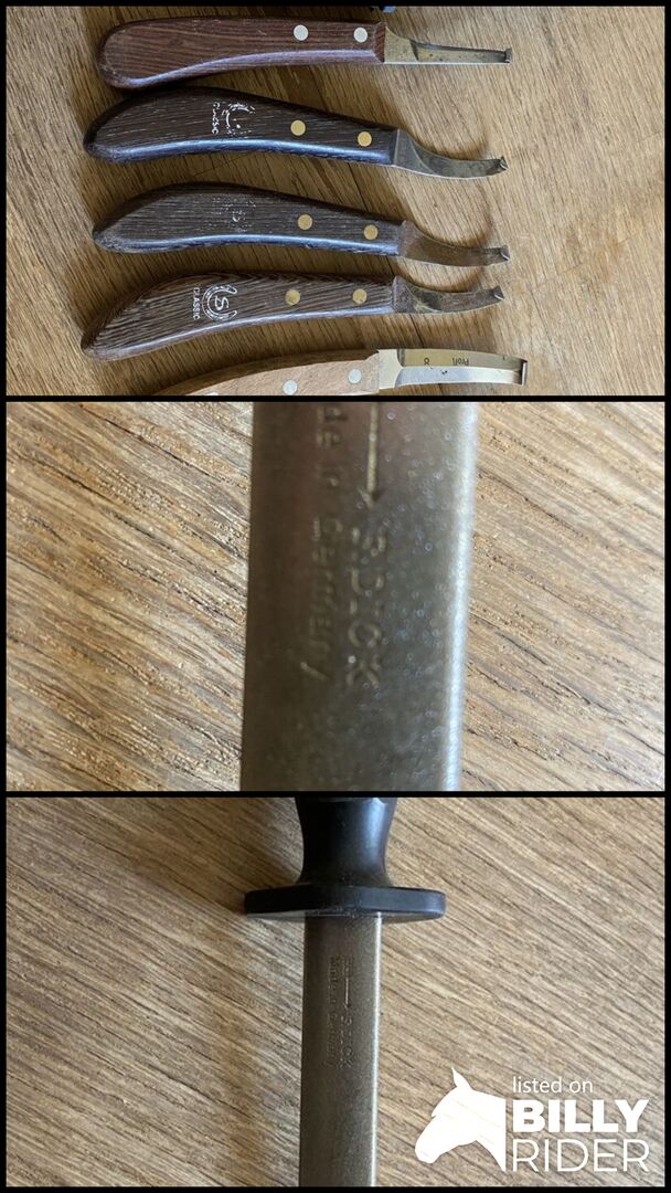 Hoof knife and prof. sharpening steel - Brand new sharpening steel diamond of the company Dick (new price 62 Euro) plus 4 hoof knives of the company Double S, right cutting, and 2 hoof knives cutting on both sides