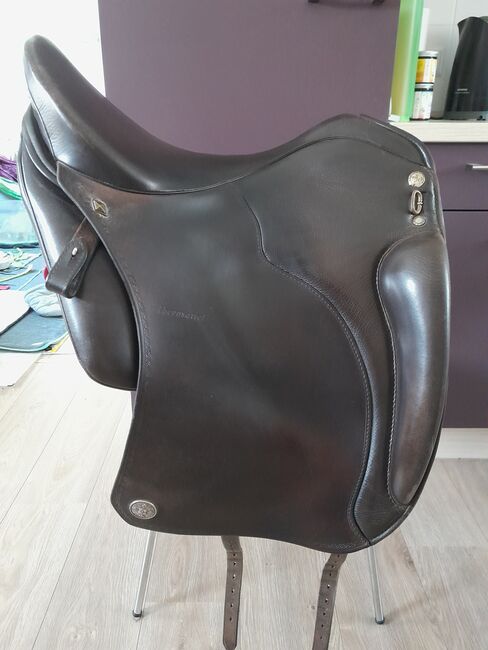 Ibero saddle El Primero - I am selling a used Ibero saddle in good condition. The saddle certificate is present. I bought the saddle myself used about 2 years ago, now it no longer fits my horse. The old owner bought it new in 2015. It also comes with the saddle cover, a lambskin seat for the rider and a matching saddle cloth. The left stirrup mount is broken, but can be repaired.