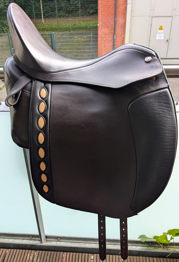 Ibero saddle Sevilla Classic 17,5 - I am selling our Iberosattel "Sevilla Classic", which I bought NEW from Iberosattel in 2022. The saddle has slight signs of use (see photos), but these are not visible on the outside, except for two very small scratches (see penultimate photo) Seat size: 17.5 Seat shape: Deep seat Chamber width: 32 Pommels are removable with Velcro NP 3.350 Euro The saddle can be borrowed for a trial period for a deposit