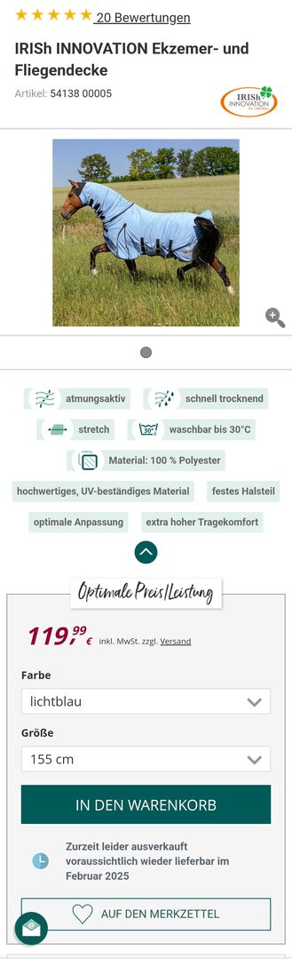 Ich verkaufe die o.g. Decke da sie meinem Pferd nicht richtig passt.