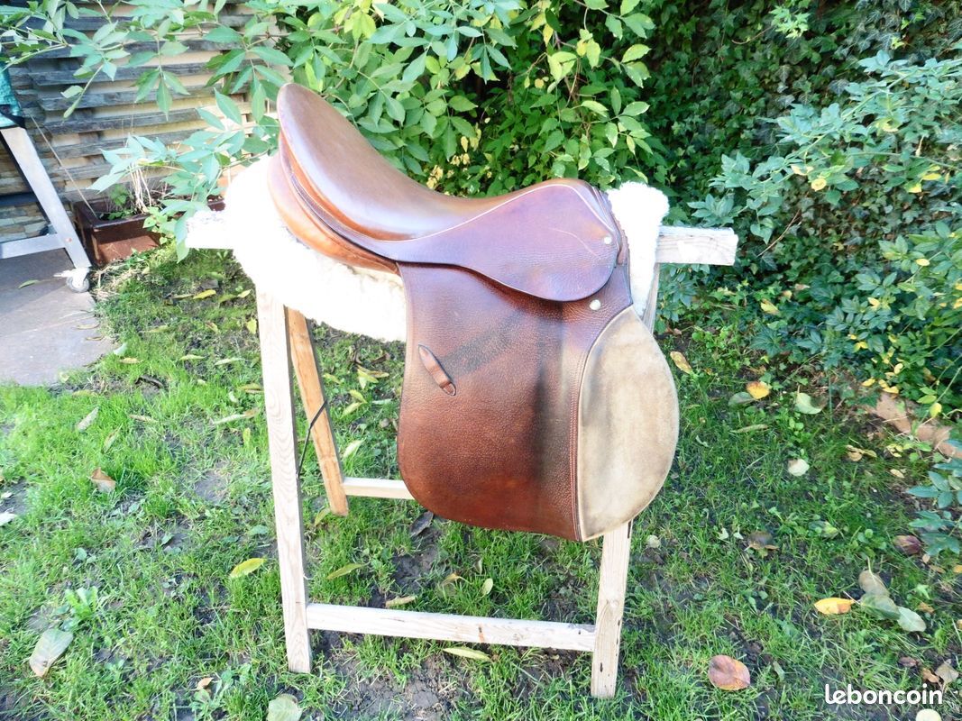 Jumping saddle STÜBBEN - I sell a STÜBBEN brown leather jumping saddle. It has not been used for a while. The measurements can be seen in the photos, as well as the few irregularities of the leather. The price is negotiable within reason. (The saddle will be greased again before delivery if desired).
