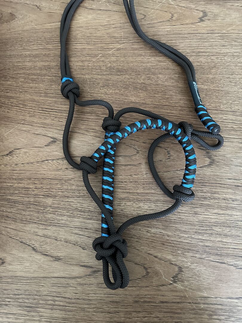 Knotted halter size pony - Great knotted halter in brown / turquoise with braided nosepiece. Unfortunately did not fit my quarter mare