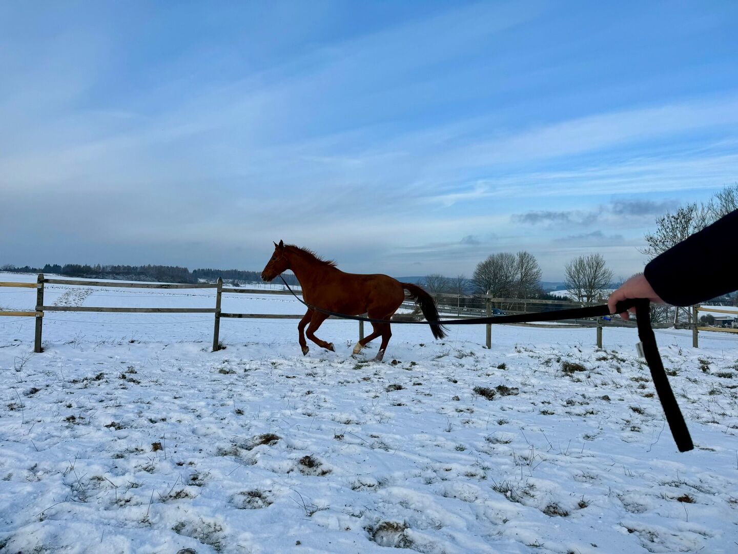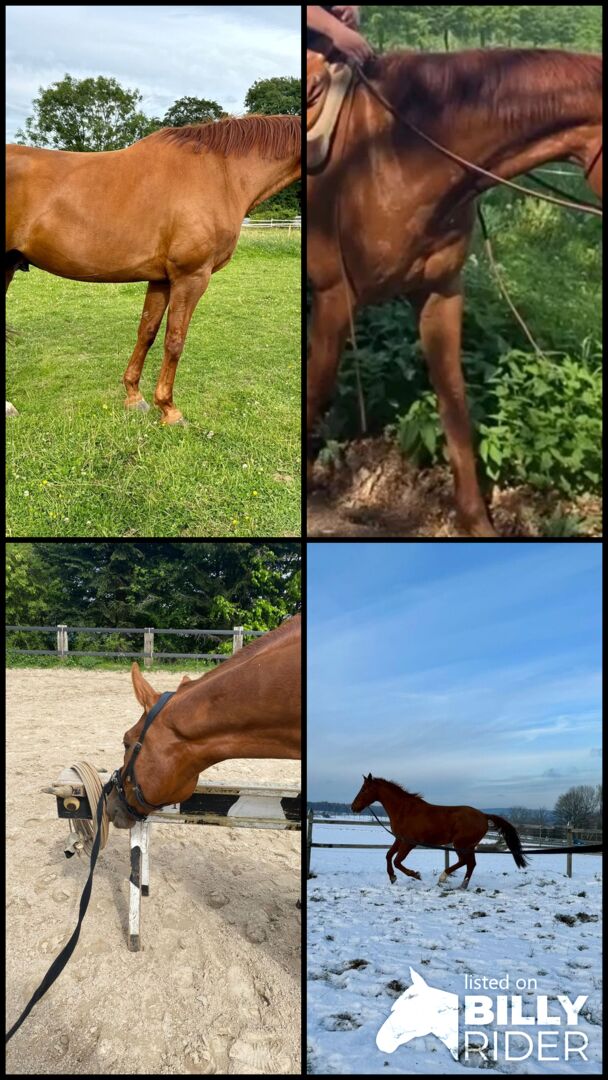 Donavan- this somewhat special Rhineland gelding, born in 2016 and 172 cm tall, is looking for a new home with someone who has a lot of experience in dealing with problematic horses. He is a willing horse with very good basic gaits and a great pedigree. Unfortunately, he tends to test new riders. He should therefore be placed in hands that will support him with a lot of patience and sound knowledge and who will not give up immediately even in the event of setbacks. As he likes to move around, he will only be given to an open stable or active stable. He has never had any illnesses. Only a slight inside position of the front legs. Donavan has been ridden in all gaits in the arena, on the arena and in the field. Not a beginner, re-starter or children's horse. He is person-oriented and needs a caregiver. Due to his problems under saddle, he is being sold as conditionally rideable. The gelding will only be sold to really good, experienced hands.