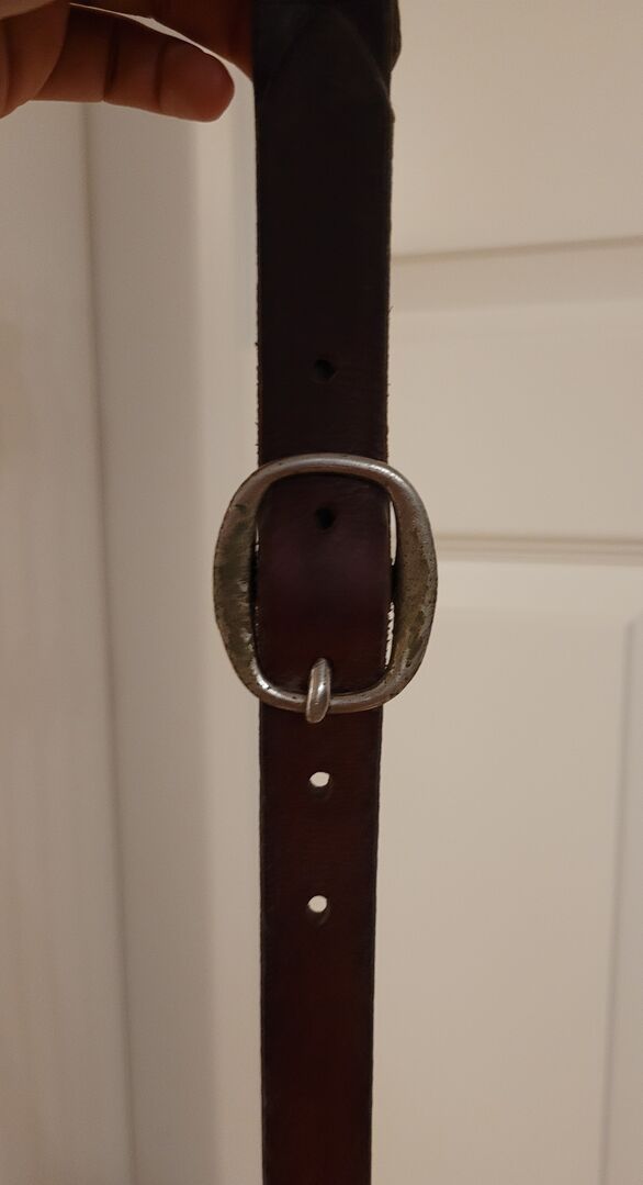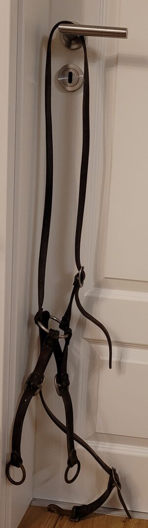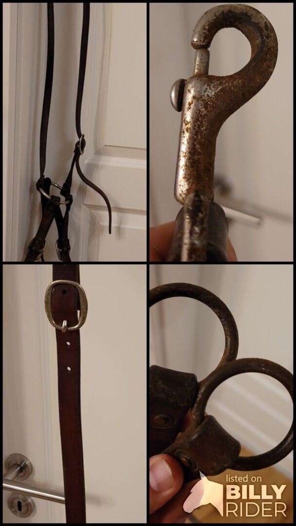Leather martingale - Sell a leather martingale. The fasteners and hooks show signs of use, which can be seen in the photos. This is a martingale that can be attached directly to the girth with a metal hook. This allows you to attach and remove it at any time without having to open the girth