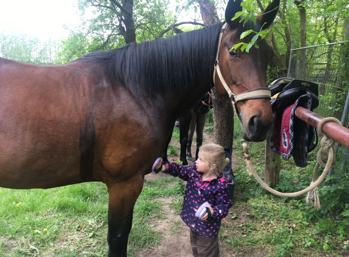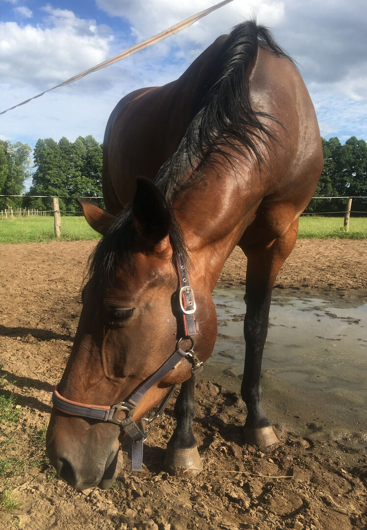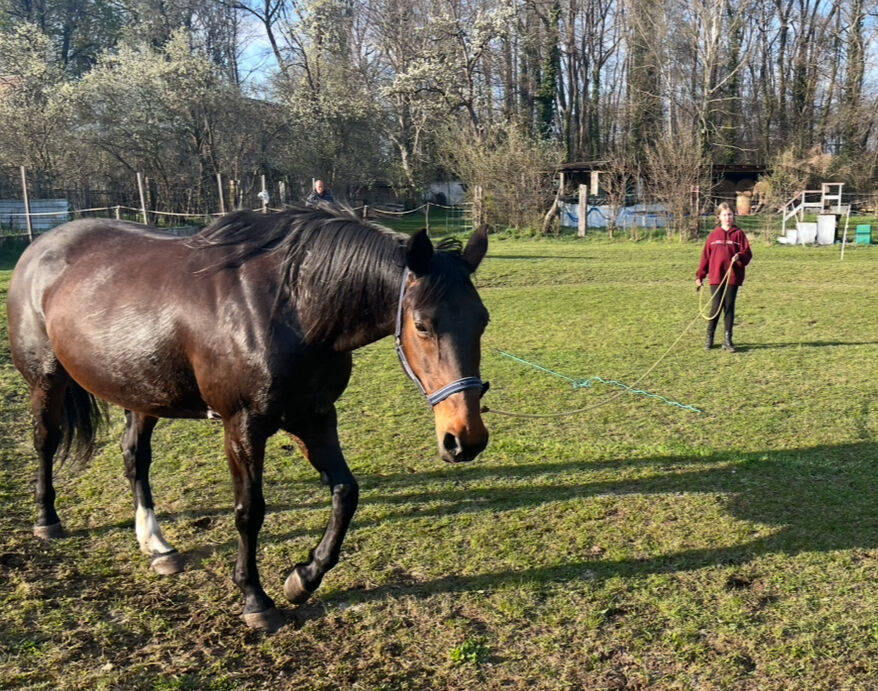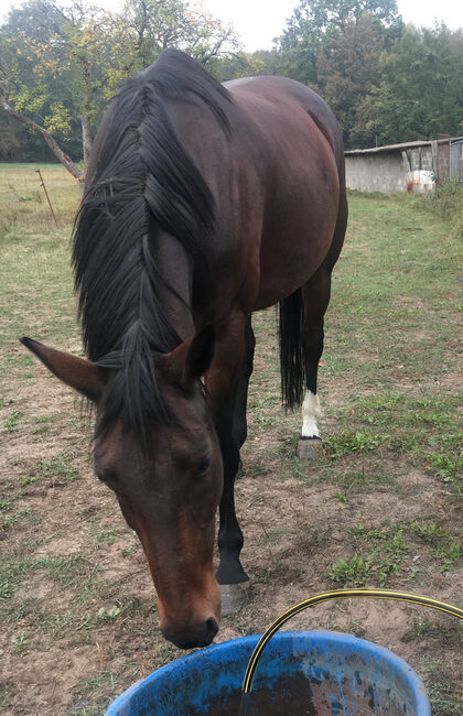 Mare for sale - I am looking for a new home for my mare Samira. She is a warmblood mare with full papers, she is bay, 15 years old and has a height of 1.69 meters. She was previously ridden as a leisure horse, loves jumping and can also be ridden well in dressage. She is well-behaved in handling, but sensitive and fine in hand under saddle - more of a horse for sensitive riders. She has not been worked for about 2 years now, so I am only selling her as not ridden at the moment or as a broodmare. Therefore no test riding possible! With time and patience she can be ridden again in the future. At the moment she has unfortunately only been standing in our paddock, and we have been doing ground work with her from time to time recently. In summer she is completely outside, in winter she is stabled with paddock access during the day. She's not afraid of being farrowed or loaded. As long as she has been with me, she has never been ill!