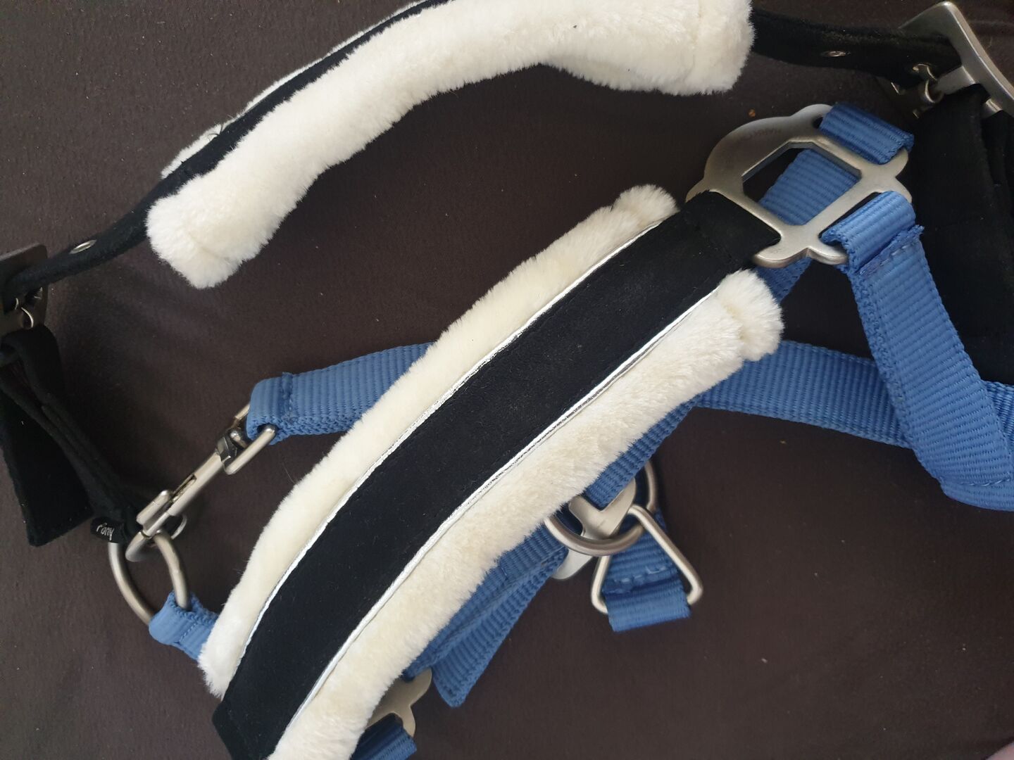 NEW Harrys Horse fur halter with rope pony - New halter with teddy fur from the Harry's Horse brand. The halter is adjustable in 3 places and has soft teddy fur on the neck and nose piece. The halter is size pony, was rather too small for my German riding pony - would say more suitable for small ponies / shettys or foals. Was only at the stable to try it on.
