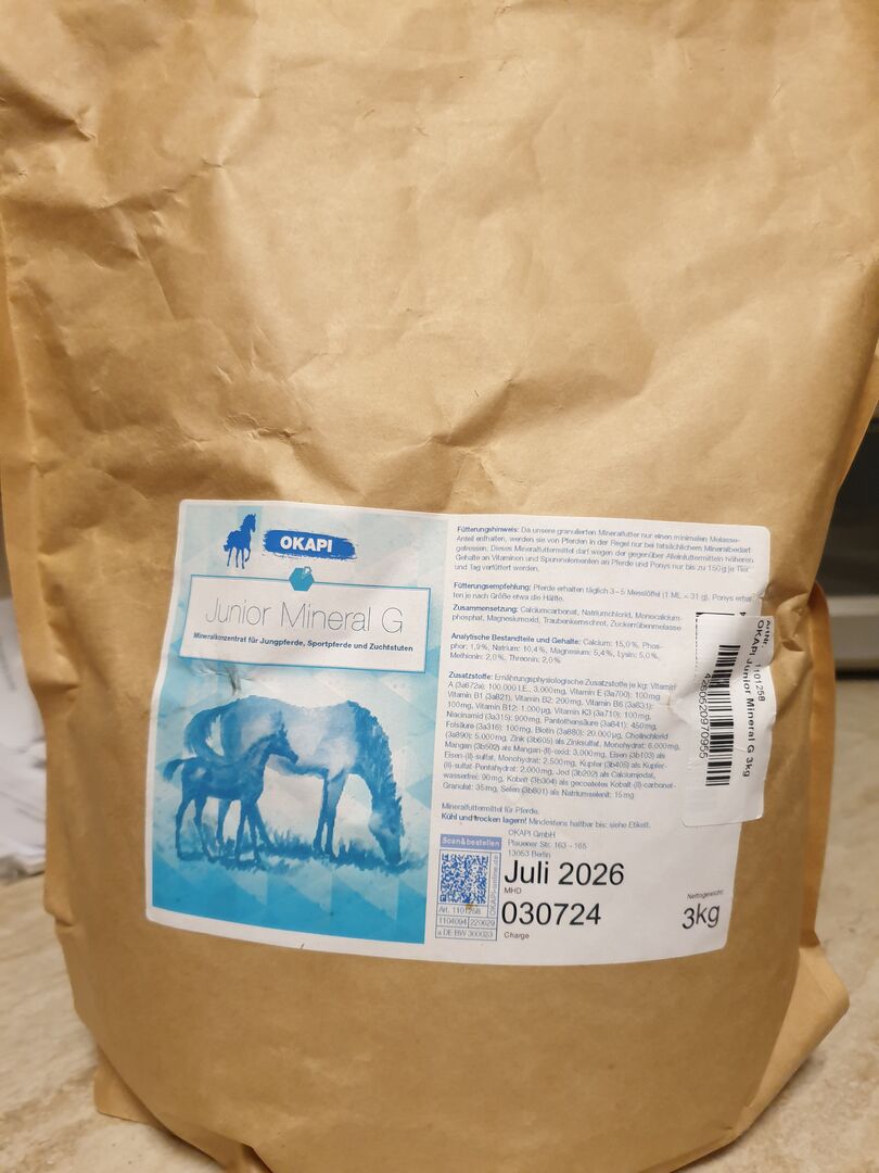 Okapi Junior mineral feed - I am selling the mineral feed from the Okapi brand. Unfortunately my horse doesn't eat it, he prefers it in pellet form. And it's too good for me to throw away. Maybe another horse will enjoy it more :)