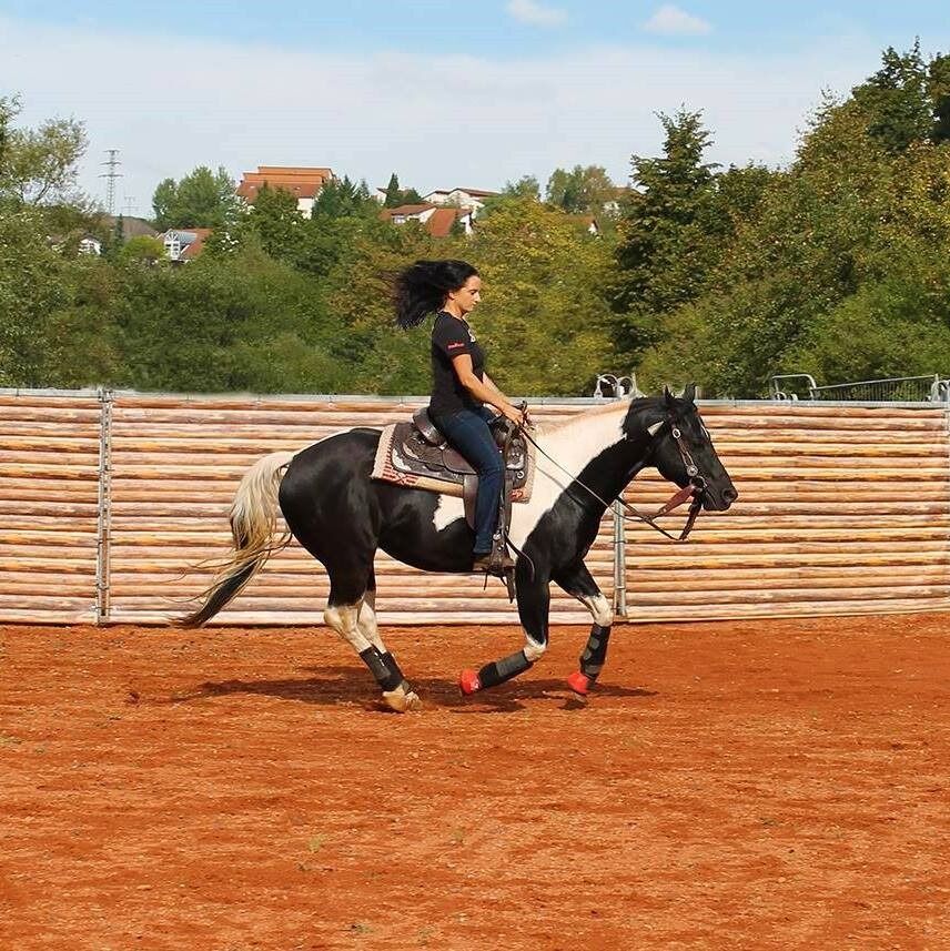 Since Spotty is not ridden due to time constraints, he is also completely unused (in the photos he was under saddle for the 3rd time and since then only about 10 times in total)! He is - as you can easily see - very docile and sensitive!