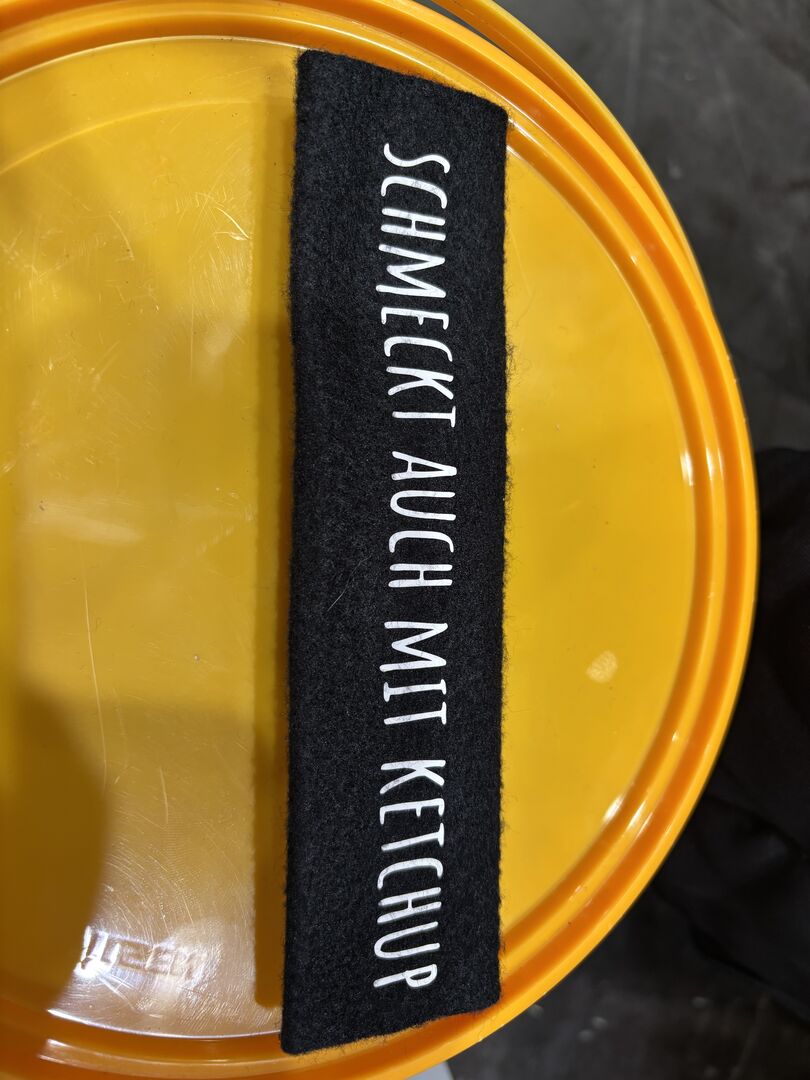 Both together for 30,00 €. Two different widths: - "miss purchase" approx. 25 cm wide - "also tastes good with ketchup" approx. 19 cm wide