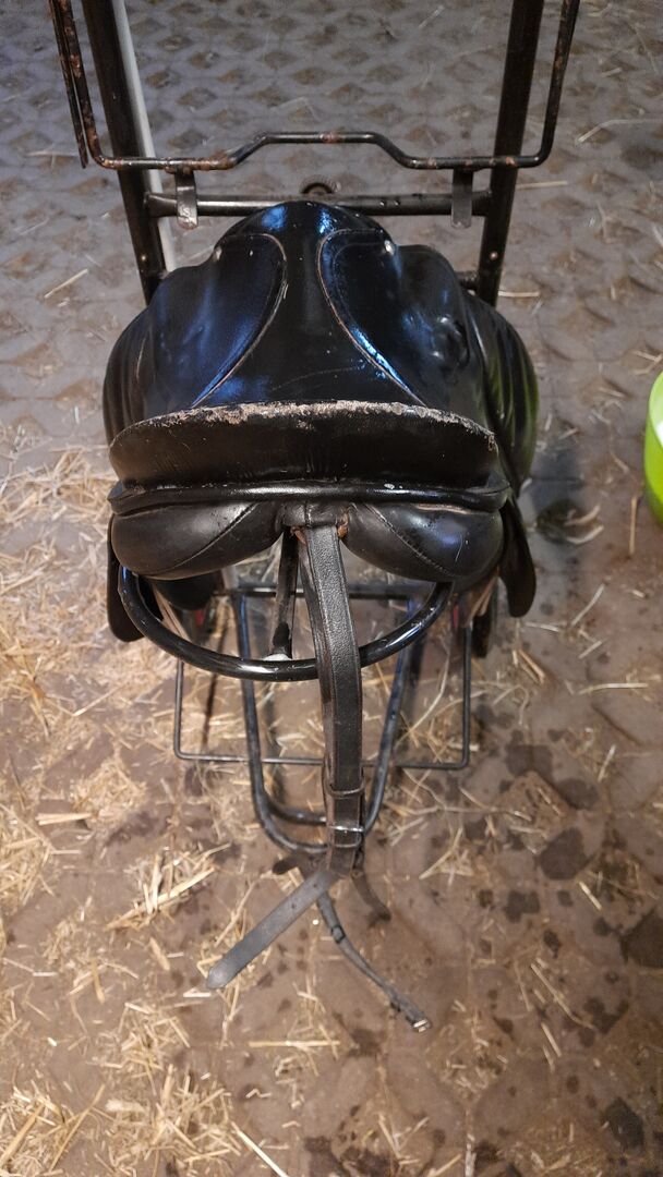 pony saddle - Sell used but well preserved pony saddle. Lay with us on a large, wide Shetty. With crupper in good condition. Damage please see pictures.