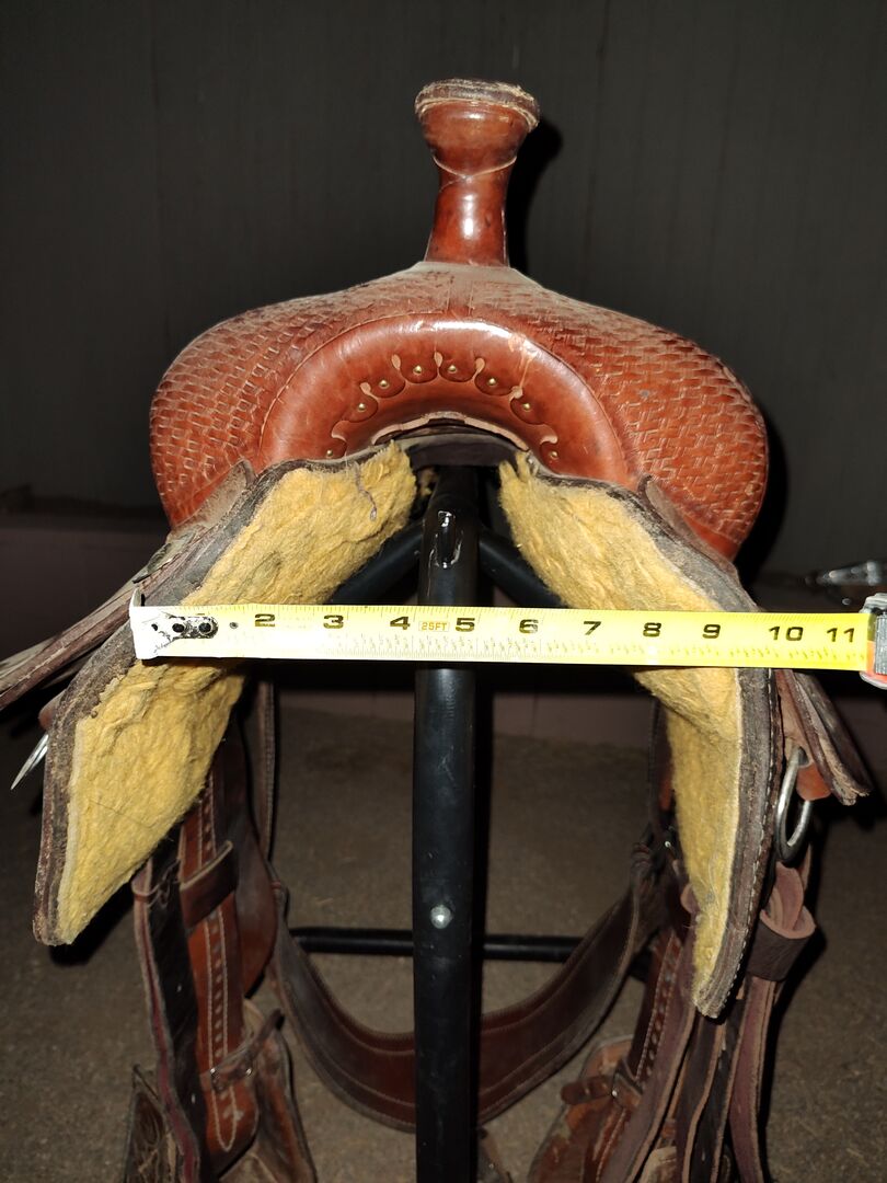 Very nice, great condition, very comfortable 16" Ranch Cutter, semi quarter bars, square skirt, medium oil. Reason for selling is headed in a different direction. Back cinch included. Aluminum cross sturrips not included, will have sturrips.
