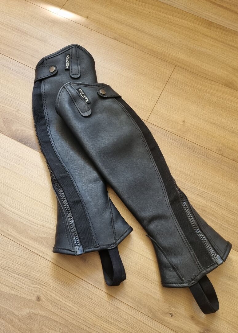 Riding chaps - Kentauer Livorno riding chaps in black height 44 width 35 The riding chaps are made of soft full-grain cowhide and are very sturdy. The zipper sits on the side with stretch insert. (Right light wear) The leather is very well maintained, slight signs of wear.
