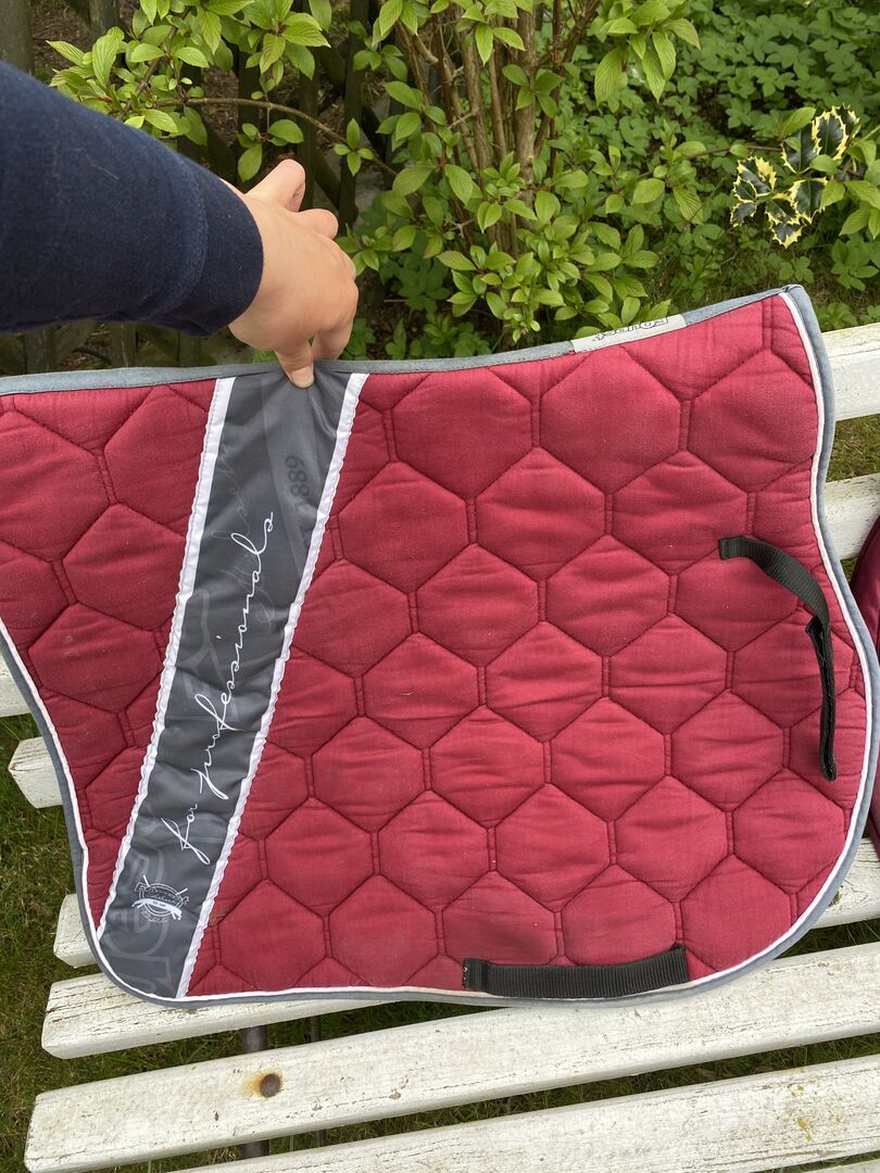 Saddle pad Equest - I use it too little and therefore it may move out. The red is a bit paler than it should be originally from washing but that is not very noticeable. Otherwise it is like new. Meanwhile, even quite clean again after it was of course washed again:)