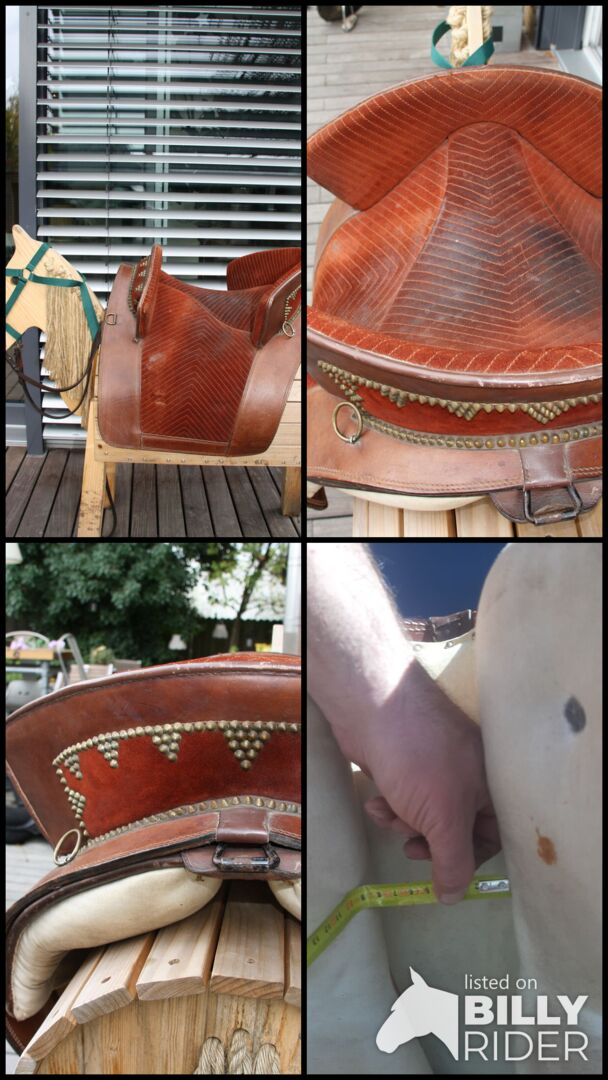Spanish decorated saddle - Richly decorated saddle - also suitable as a show saddle. Made in Spain, therefore padded with horsehair. If you are really interested, I will gladly send more pictures and measurements.