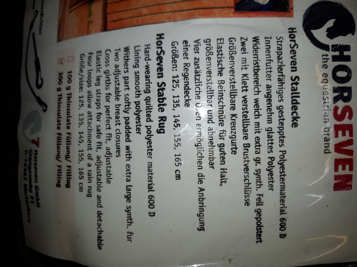 Hi Claudia, I am interested in your ad 'Stalldecke für Vollblüter / Hore Seven Stable blanket 300g'. Please contact me! 😊
