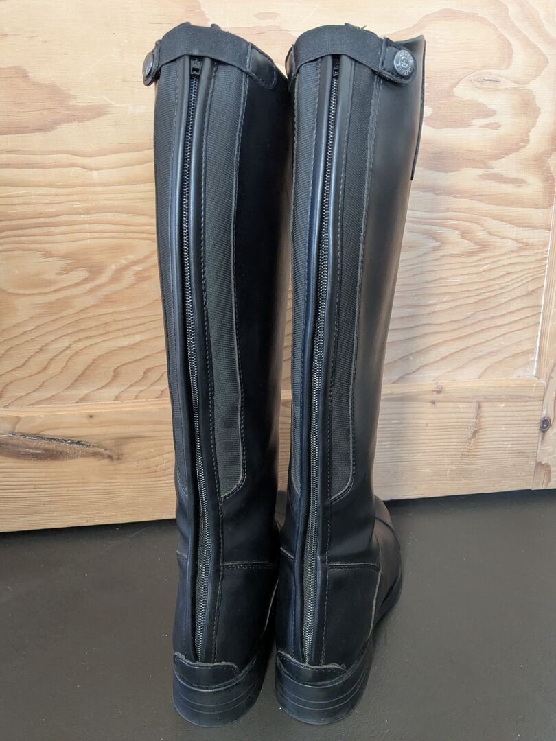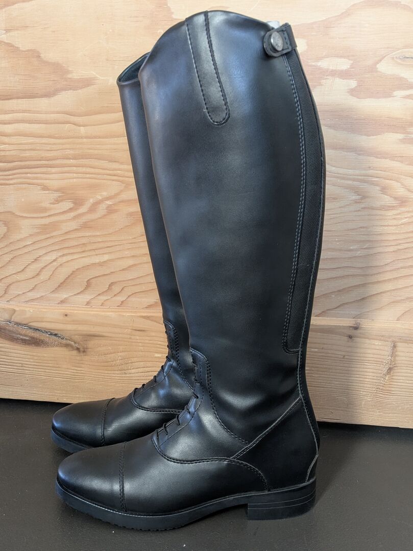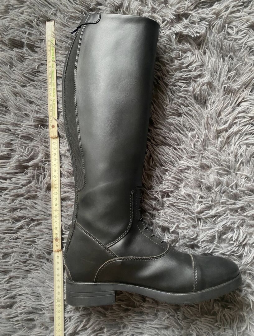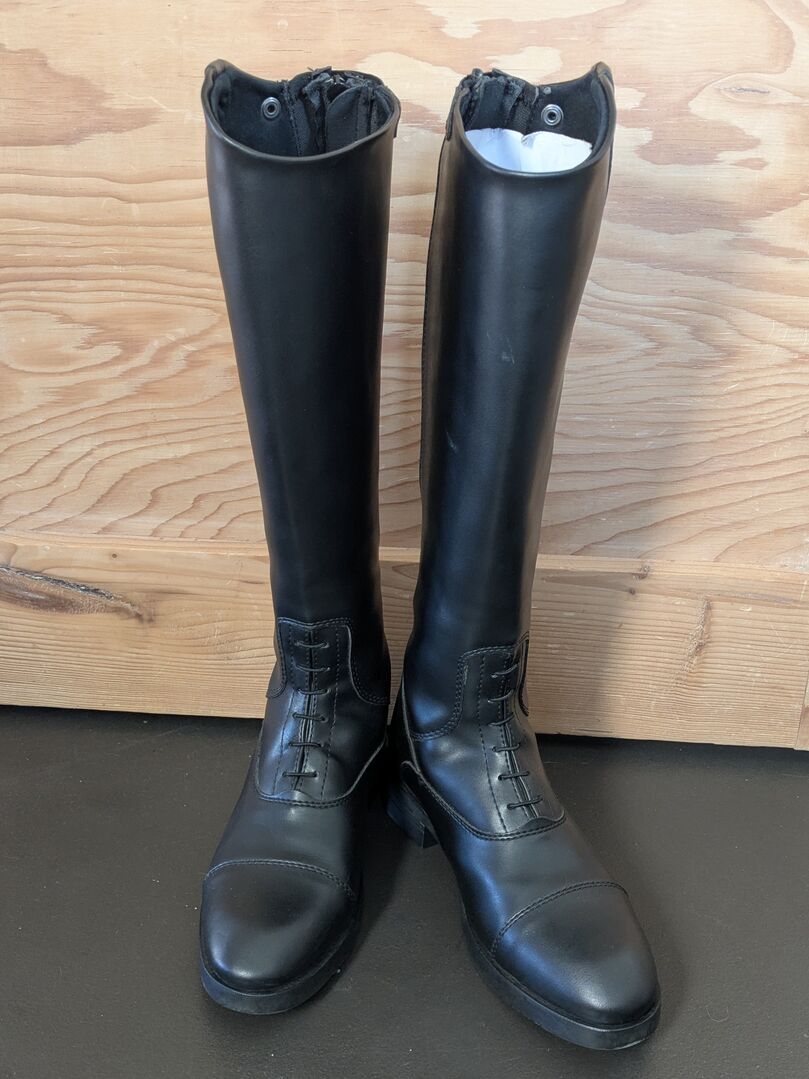 Steeds riding boots, size 40, width regular, like new - My daughter received these beautiful Steeds riding boots for Christmas 2024. Although she has very big feet, she still has baby calves, which is why the boots fit her on the foot but are unfortunately still too wide and too long on the calf. We hoped that she would grow into them, but there is no way around it. That's why I'm offering riding boots that are absolutely as good as new and have only been tried once on the horse at a bargain price. The original price at Krämer was 89 euros. The sale takes place under exclusion of any liability for material defects.