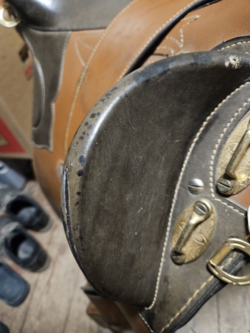 Stock saddle for sale - I am selling a stock saddle with girth and stirrups. It was rarely used and only collects dust, so it is too good for that. It has signs of use which do not affect its function.