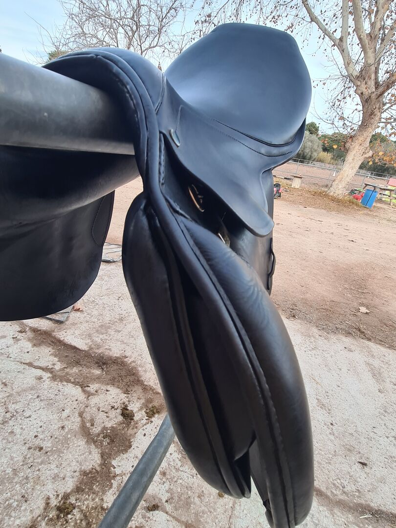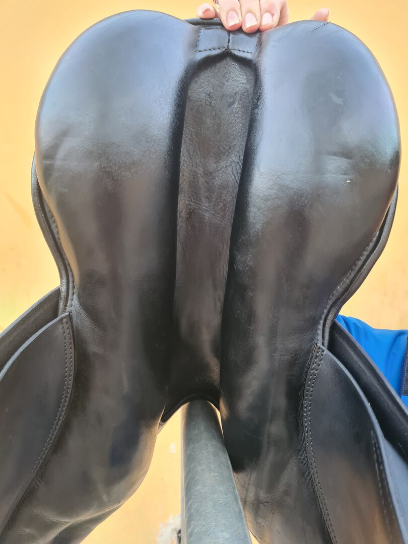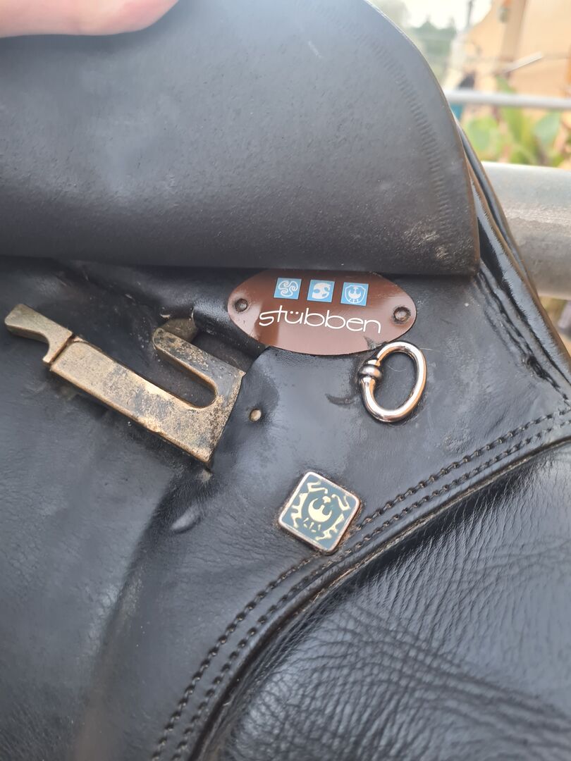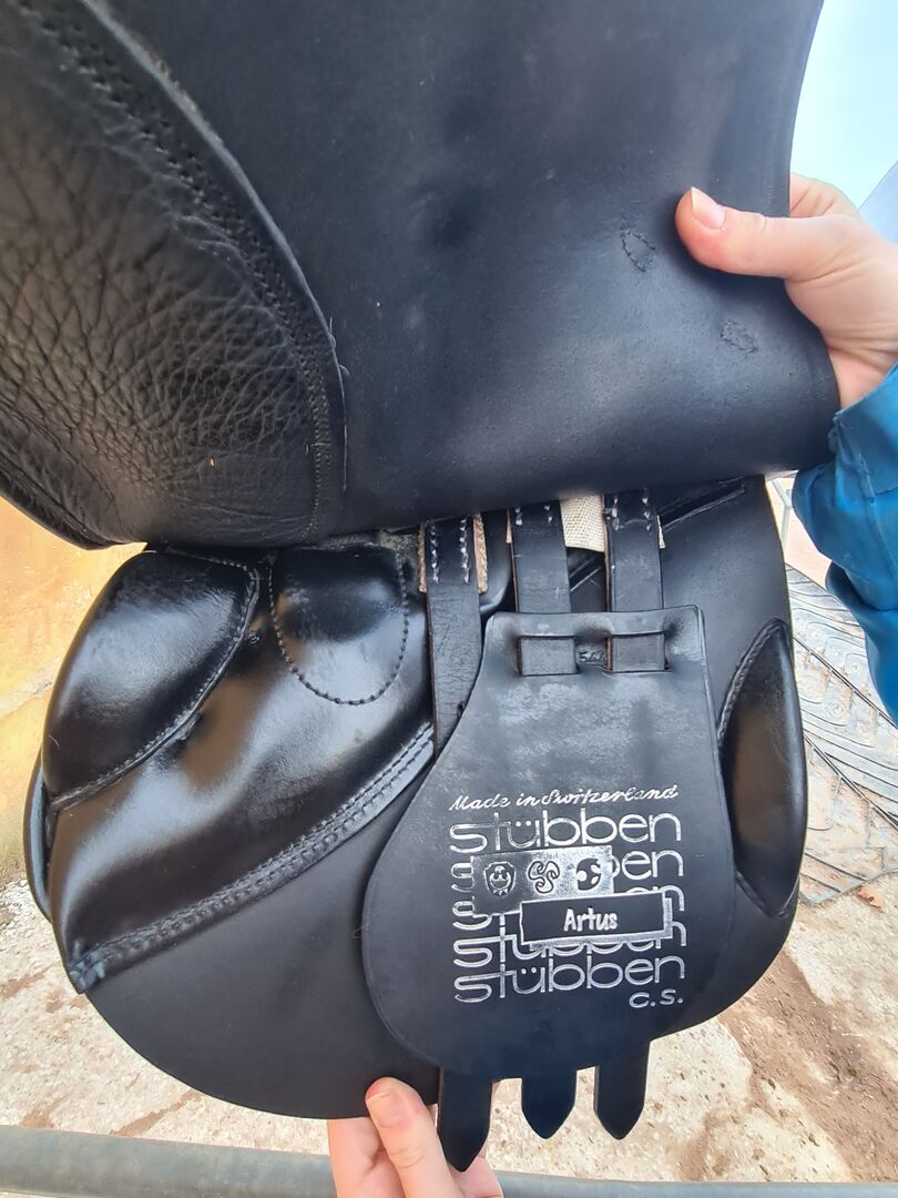 Stübben Artus jumping saddle - For sale here is a used, in mint condition, very well maintained jumping saddle of the brand Stübben, model Artus CS, seat 17. The chamber width is 31, thus a medium chamber, therefore suitable for many horses. The saddle has a wide spinal canal. It also has medium thigh rolls and small calf rolls and provides a great riding and sitting feel. The saddle tree and girth straps are in perfect condition, the saddle shows the usual signs of wear.