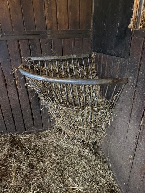 Sulzberger galvanized corner hay rack with feed saving grid - I am offering my solid galvanized hay rack with feed saving grid from Sulzberger, which I no longer need due to a change of stable. The original price was 247€, used here as a bargain! Due to the heavy weight, unfortunately only for self-collection.