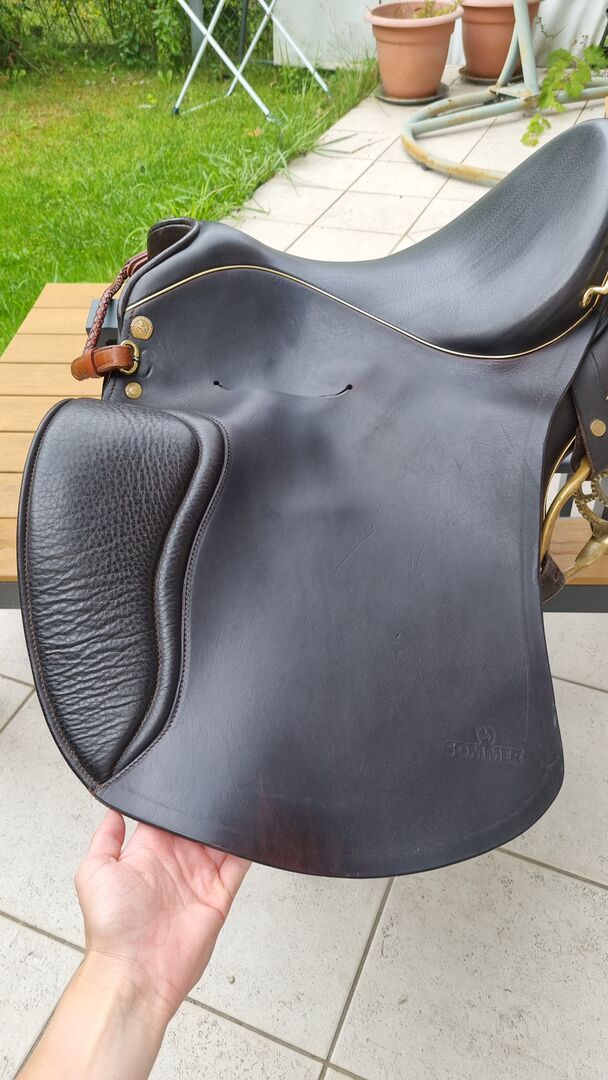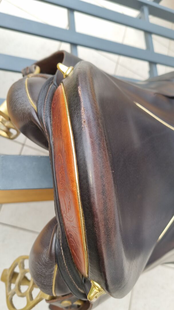 The Juchten leather proved to be more susceptible to small scratches or even pressure marks in use than conventional leather. However, since the leather always works, small pressure marks can be ridden out again well by riding with full seat breeches. At the top of the rear pommel, the saddle unfortunately has an elongated scrape that can not be made out so. On the frame of the tack room are also a few minor quirks (see photos).