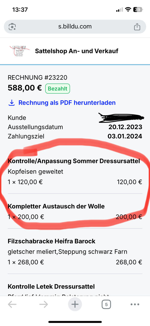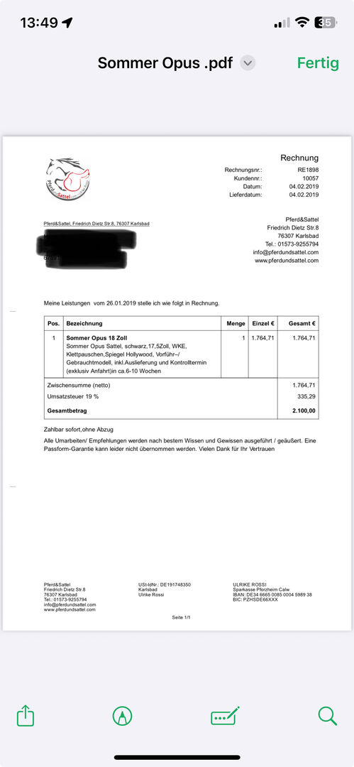 Summer saddle Opus 1 - We are selling our beloved and cherished Opus saddle. It is currently set to a saddle chamber of 35/36. As the saddle is infinitely adjustable by the saddler, it fits almost any horse's back. The saddle was completely checked and re-padded in December 23 and has not been used since. This means that it will still settle and will then need to be re-padded. The saddle is in good/maintained condition and has signs of use. The left loop for the stirrup leathers is a little torn. (picture number 4) This should be easily repaired by a saddler. The saddle is super comfortable and we first had it on our petite Hispano Arabian mare and then on our strong PRE gelding.