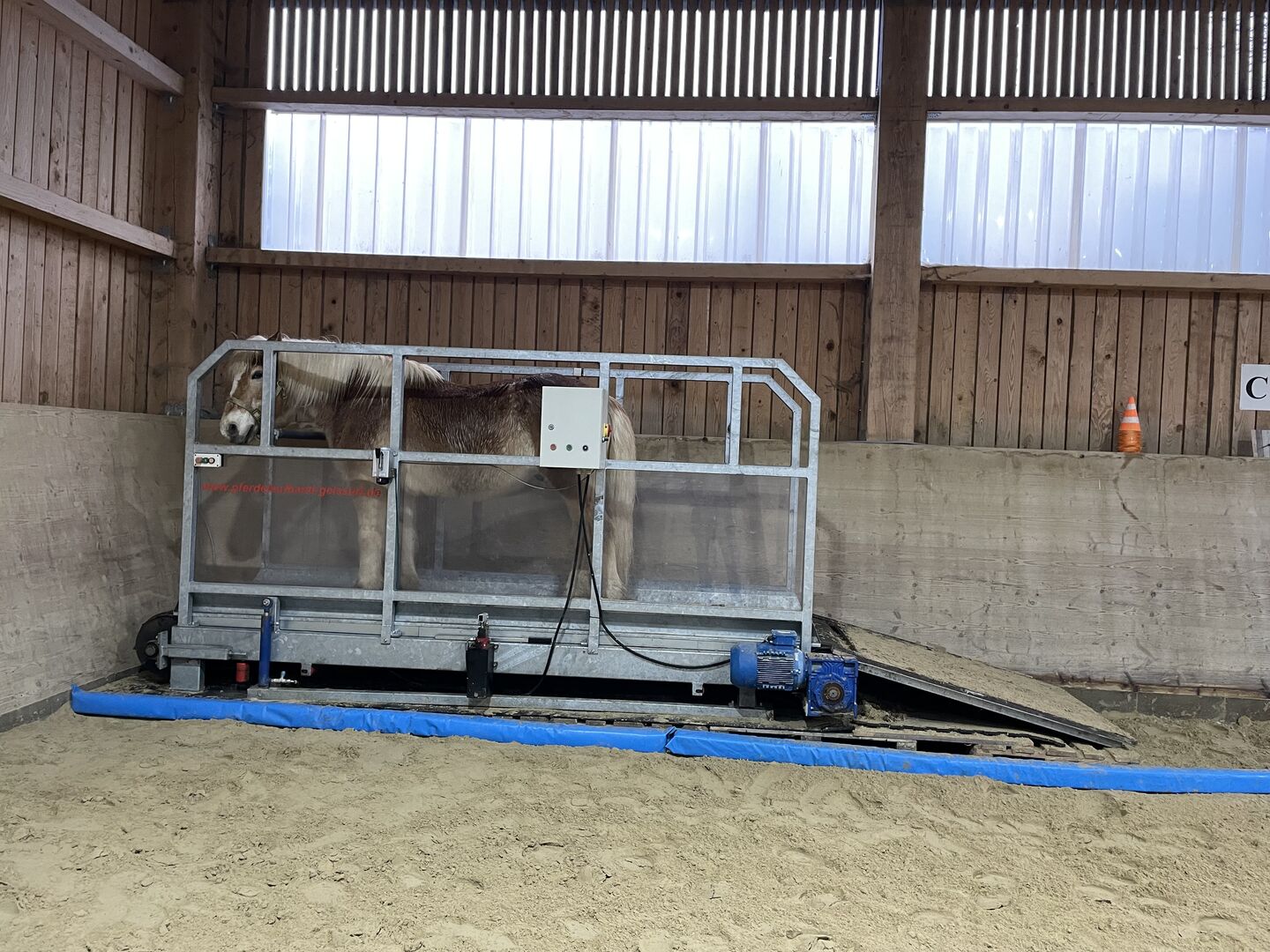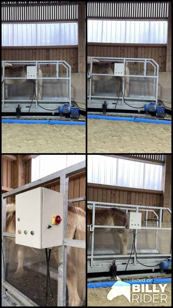 used horse treadmill - Very good used horse treadmill for sale, robust galvanized steel construction, hydraulic system for activating the hindquarters, transparent and impact-resistant side walls