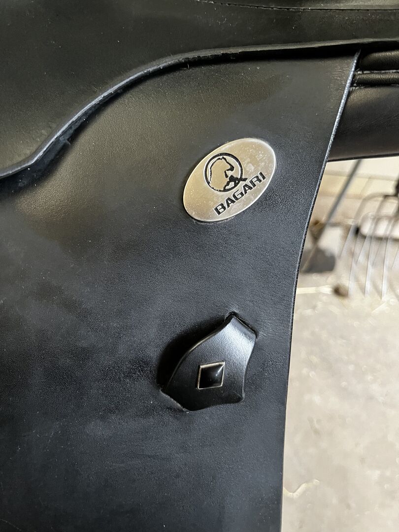 Very comfortable jumping saddle Bagari - For sale is a black jumping saddle of the Bagari brand in 18 inches with a 32 mm chamber. The saddle can be fitted by a saddler.
