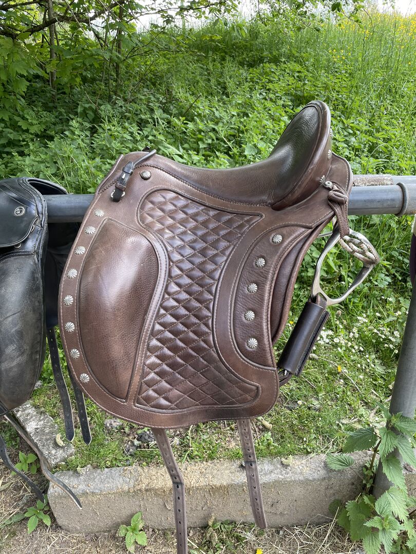 Kammer verstellbar. Gepflegt. Ein Schutz vom Steigbügel fehlt rechts, ist mit einem Haargummi ersetzt. Imbusschlüssel wird mitgeliefert sowie Pauschen vorne.